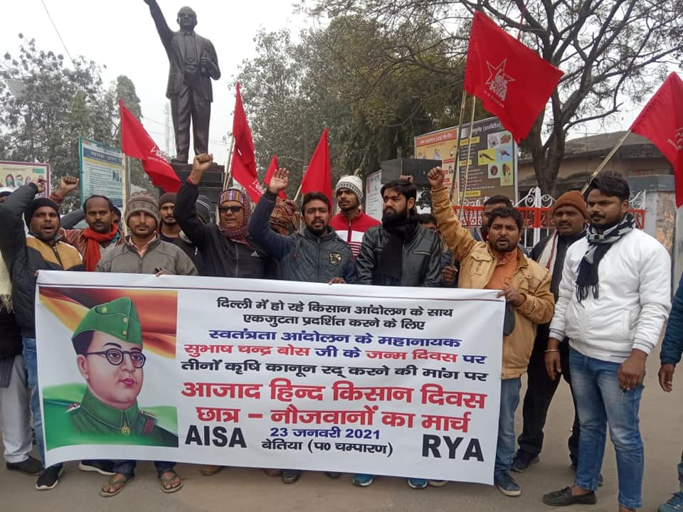 किसान विरोधी तीन कृषि कानूनों के खिलाफ जारी आंदोलन का नेतृत्व कर रहे किसान संगठनों संयुक्त किसान मोर्चा और अखिल भारतीय किसान संघर्ष समन्वय समिति के आह्वान पर नेताजी सुभाषचन्द्र बोस की 125वीं जयंती, 23 जनवरी 2021, को पूरे देश में आजाद हिंद किसान दिवस के रूप में मनाया गया. बिहार में भी इस अवसर पर विविध कार्यक्रम आयेजित हुए.