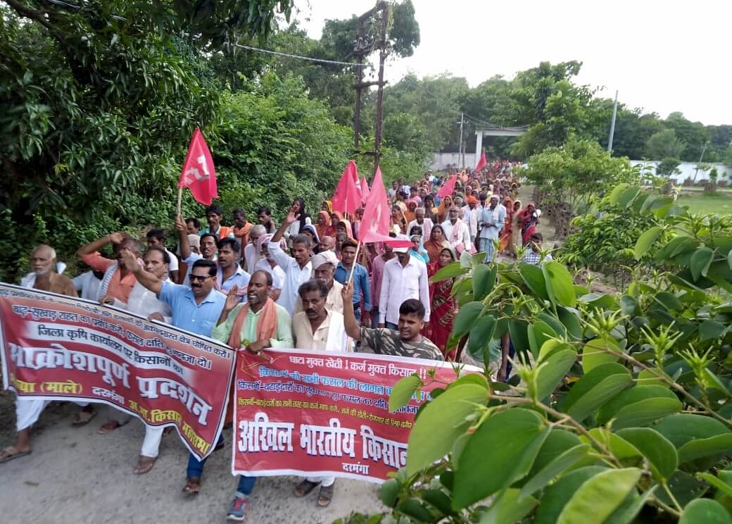 जिले को सुखाड़ग्रस्त घेषित कर राहत कार्य चलाने की मांग पर 4 सितंबर 2019 को दरभंगा जिला कृषि कार्यालय पर प्रदर्शन करते किसान