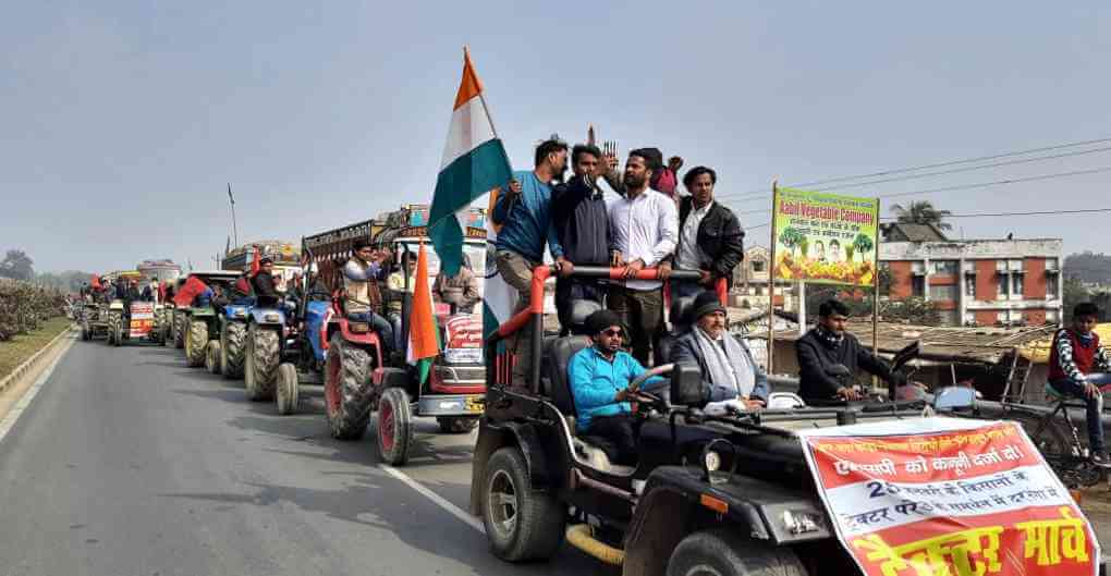 बिहार में पटना समेत कई जिलों में ट्रैक्टर जुलूस का आयोजन किया गया. पटना के फुलवारीशरीफ में स्थानीय विधायक गोपाल रविदास के नेतृत्व में 50 से अधिक ट्रैक्टर और सैंकड़ों मोटरसाइकिलों के साथ एम्स से चितकोहरा गोलबंर मार्च निकाला गया.