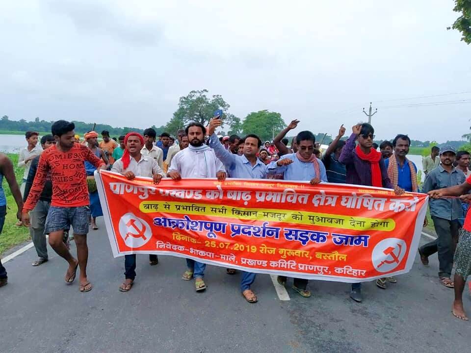 25 जुलाई को कटिहार के प्राणपुर में बाढ़ पीड़ितो ने भाकपा(माले) के बैनर तले ने मनिया चौक से बस्तोल चौक तक 6 किमी पदयात्रा की और वहां पहुंचकर स्टेट हाइवे-81 को 5 घंटों तक जाम कर दिया. 19 जुलाई को ही प्राणपुर में बाढ़ का तांडव जारी है. भाकपा(माले) का. प्रदीप कुमार राय व आइसा नेता काजिम इरफानी के नेतृत्व में प्रदर्शनकारियों ने कटिहार डीएम या एसडीओ को जाम स्थल पर बुलाने की मांग की. सड़क जाम में घंटों फंसे रहे बारसोई न्यायालय के न्यायाधीश को उल्टे पांव लौटना पड़ा। प्राणपुर अंचलाधिकारी ने 5-सुत्री मांगों को पूरा करने के आश्वासन दके साथ जाम को हटवाया.