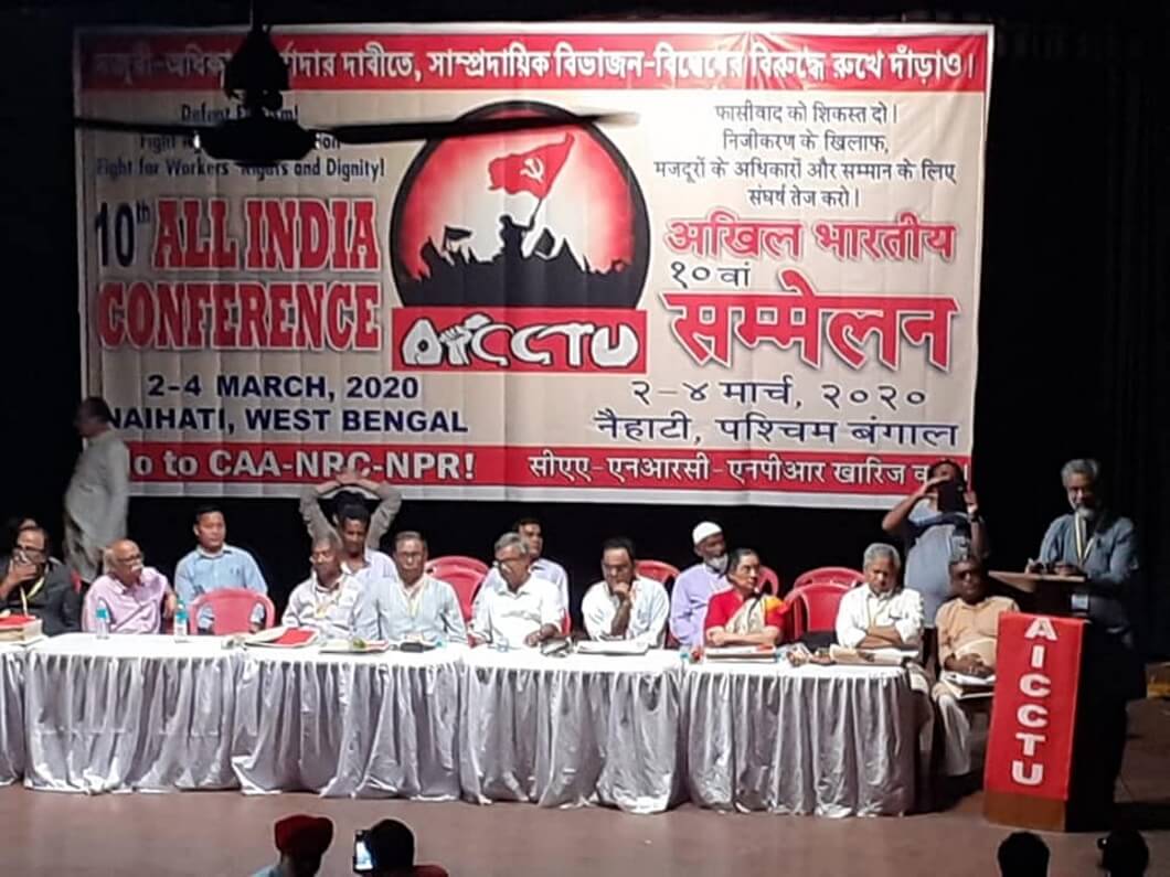 यह मेरे लिये बड़े हर्ष और सम्मान की बात है कि आज मैं एआईसीसीटीयू के दसवें अखिल भारतीय सम्मेलन में आप सभी का अभिनन्दन कर रहा हूं. इस सम्मेलन के जरिये हम भारत में ट्रेड यूनियन आंदोलन के एक सौ वर्षोें तथा एआईसीसीटीयू के तीस वर्षों के गौरवमय इतिहास का भी समारोह मना रहे हैं. आप सभी लोगों के साथ मैं भी उन अनगिनत शहीदों को, जिन्होंने आत्मबलिदान के सर्वोच्च मानदंड कायम करके इस आंदोलन को शक्तिशाली किया है, श्रद्धांजलि अर्पित करता हूं. हम उन नेताओं का आदरपूर्वक स्मरण करते हैं जिनकी स्मृति में आपने इस सम्मेलन स्थल का नाम रखा है – संतोष कुमारी देवी, जो संभवतः भारत की पहली ऐसी महिला ट्रेड यूनियन नेता थीं जिन्होंने 1920 के दशक में बंगाल के जूट मिल मजदूरों को संगठित किया था और उनका नेतृत्व दिया था, और हमारे प्रिय नेतागण कामरेड स्वपन मुखर्जी, डीपी बख्शी, सुदर्शन बोस, और हरी सिंह, जिनका हाल के अरसे में देहांत हुआ है. मैं वामपंथी ट्रेड यूनियन आंदोलन के वरिष्ठ नेता कामरेड गुरुदास दासगुप्ता और क्षिति गोस्वामी की स्मृति को भी सलाम करता हूं, जिन्हें हमने 2019 के वर्ष में खोया है. इस अवसर मैं हमारे उन तमाम कामरेडों को, जो जेल की तकलीपफें भोग रहे हैं, मारुति और प्रिकोल के बहादुर कामरेडों को, जिन्हें आजीवन कारावास की सजा मिली है, और छत्तीसगढ़ के मजदूरों की नेता अधिवक्ता कामरेड सुधा भारद्वाज को, जिन पर तानाशाही कानून यूएपीए थोप दिया गया है, तथा उनके साथ गिरफ्तार किये गए अन्य मानवाधिकार कार्यकर्ताओं को सलाम पेश करता हूं और उन सभी की बिना शर्त पफौरन रिहा करने की मांग करता हूं.