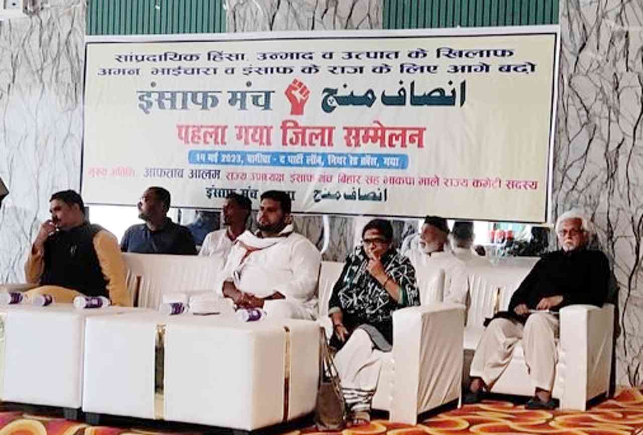 14 मई 2023, को रेड क्राॅस भवन, गया स्थित बागीचा हाॅल में साबीर खान के संचालन व वरिष्ठ अधिवक्ता फैयाज हाली की अध्यक्षता में इंसाफ मंच का पहला गया जिला सम्मेलन संपन्न हुआ जिसमें आमिर तुफैल सचिव व जामिन हसन को अध्यक्ष बनाया गया.