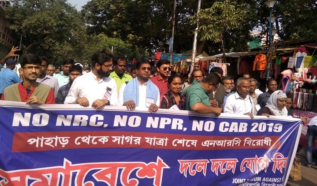 9 दिसम्बर 2019 को, जिस दिन लोकसभा में सीएबी पेश हुआ, उसी दिन कोलकाता में ‘एनआरसी विरोधी संयुक्त मंच’ (ज्वायंट फोरम अगेंस्ट एनआरसी) के बैनर तले एनआरसी-विरोधी और सीएबी-विरोधी विशाल रैली निकाली गई. इस रैली को भाकपा(माले) पोलितब्यूरो सदस्य कविता कृष्णन, पूर्व आईएएस अधिकारी कन्नन गोपीनाथन, जिन्होंने धारा 370 के तहत कश्मीर को दिये गये विशेष दर्जे का विलोप किये जाने के प्रतिवाद में सेवा से त्यागपत्र दे दिया और अब अखिल भारतीय एनआरसी के खिलाफ प्रतिवाद में प्रचार कर रहे हैं, और पूर्व जेएनयूएसयू अध्यक्ष कन्हैया कुमार एवं अन्य नेताओं ने सम्बोधित किया.