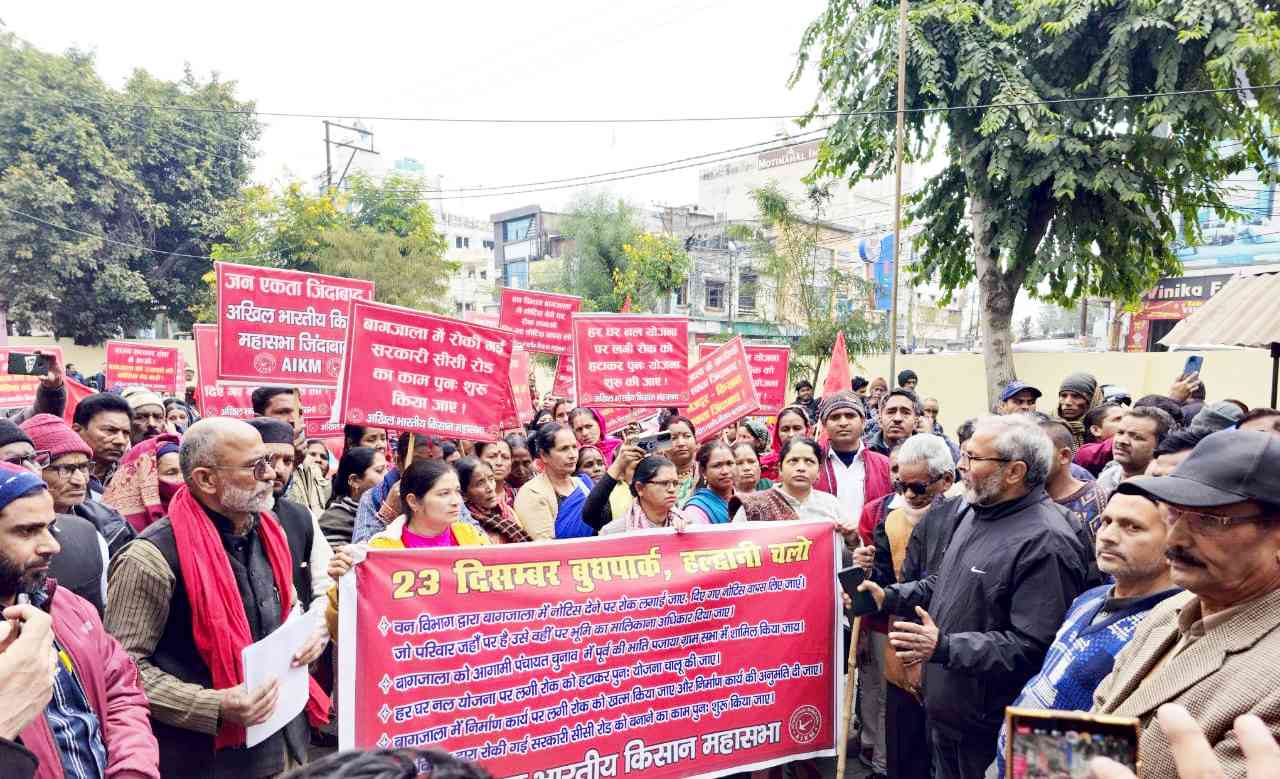 23 दिसंबर 2024 को उत्तराखंड के हलद्वानी स्थित बुध मार्क में किसान महासभा के बैनर तले एक प्रदर्शन किया गया और आम सभा का आयोजन किया गया. इस प्रदर्शन में बागजाला गांव के के ग्रामीणों ने भारी तादाद में हिस्सा लिया जिन्होंल के दिनों में सरकारी नोटिस थमाकर गांव खाली करने का आदेश दिया गया है. सभा के माध्यम से चेतावनी दी गई कि अगर एक माह में सरकार ने बागजाला से नोटिस वापस नहीं लिए और विकास कार्यों पर लगी रोक नहीं हटाई गई तो आंदोलन को तेज करते हुए लालकुआं विधायक का घेराव किया जायेगा. इसके साथ ही बागजाला की मांगों पर हस्ताक्षर अभियान चलाया जाएगा. बुधपार्क में सभा के बाद जुलूस निकाल कर सिटी मजिस्ट्रेट के माध्यम से राज्य के मुख्यमंत्री को मांग पत्र भी भेजा गया.
