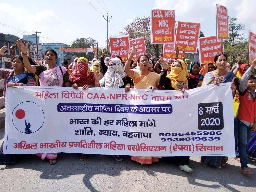 सीवान में ऐपवा के बैनर तले मार्च निकाला गया. यह मार्च सीएए, एनपीआर, एनआरसी के खिलाफ चल रहे अनिश्चितकालीन धरनास्थल तक गया. वहां से धरना में शामिल महिलाएं भी इसमें शामिल हुईं. भारी तादाद जुटी हिन्दू और मुस्लिम दोनों ही समुदाय की महिलाओं ने शहर के मुख्य मार्गोंं से होकर एक बड़ा जुलूस निकाला और धरनास्थल लौटकर वहां सभा आयोजित की.