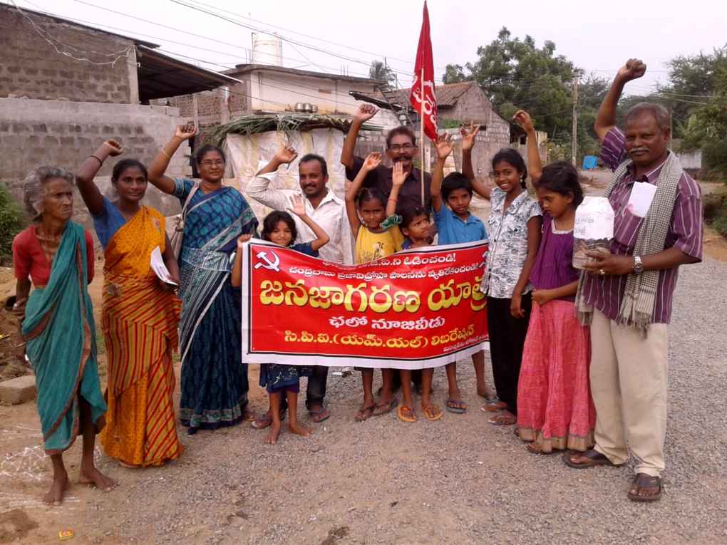 आंध्र प्रदेश के गांवों और मंडलों में भाकपा(माले) और इसके जन संगठनों ने ‘जन जागरण यात्रा’ शुरू की है. मोदी के फासिस्ट शासन और चंद्रबाबू नायडू ;तेदेपाद्ध की गरीब-विरोधी, कॉरपोरेट-परस्त नीतियों का भंडाफोड़ करते हुए भाकपा(माले) घर-घर जाकर व्यापक जनता के साथ संपर्क कर रही है. इस जन जागरण यात्रा के दौरान पूर्वी गोदावरी, कृष्णा, गुंटूर और श्रीकाकुलम जिलों में 31 मंडपों के 67 गांवों / वार्डो में 16013 परिवारों के बीच जन संपर्क चलाया गया. इस अभियान के क्रम में कार्यकर्ताओं ने आम लोगों को बताया कि मोदी और चंद्रबाबू की सरकारों ने देश और राज्य में किस तरह जनता को धोखा दिया है.