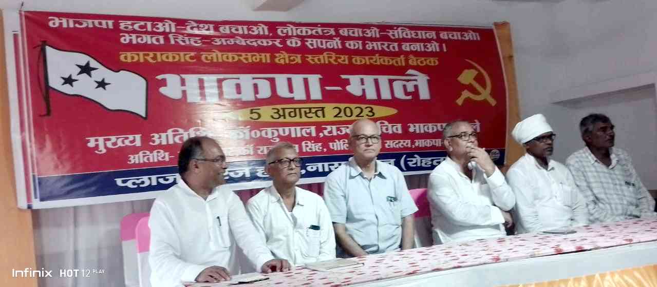 काराकाट लोकसभा क्षेत्र स्तरिय भाकपा माले रोहतास-औरंगाबाद जिला कमेटी की संयुक्त बैठक विगत 5 अगस्त 2023 को प्लाजा मैरेज हाॅल, नासरीगंज में सम्पन्न हुई. बैठक की अध्यक्षता भाकपा(माले) केंद्रीय कमेटी सदस्य व काराकाट के विधायक का. अरुण सिंह, रोहतास जिला सचिव नंदकिशोर पासवान और औरंगाबाद जिला सचिव मुनारिक पासवान ने संयुक्त रूप से की.