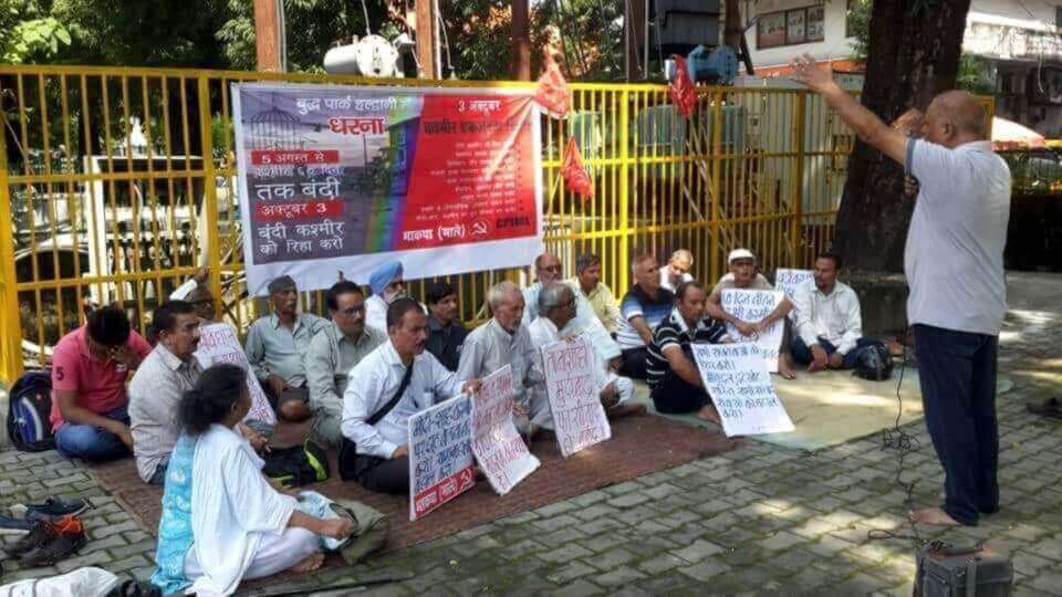 3 अक्टूबर को पूरे भारत में घोषित राष्ट्रव्यापी अभियान के तहत ‘कश्मीर एकजुटता दिवस’ के अवसर पर कश्मीर की बंदी के 60 दिन, बंदी कश्मीर को रिहा करो’ नारे के साथ बुद्ध पार्क हल्द्वानी में एकदिवसीय धरना दिया गया.
