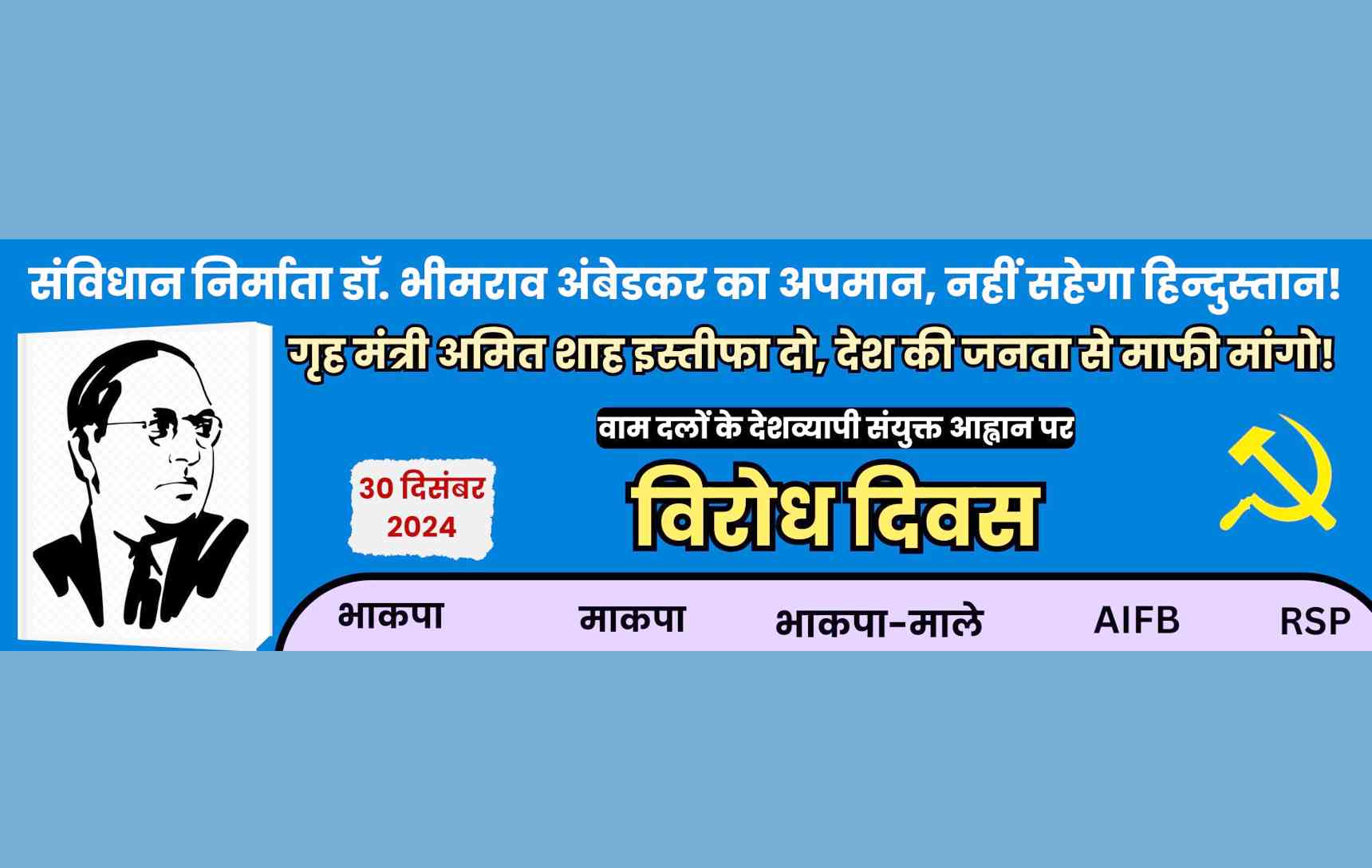 राज्यसभा में केंद्रीय गृह मंत्री अमित शाह द्वारा डॉ. बीआर अंबेडकर पर की गई अपमानजनक टिप्पणियों के खिलाफ देश भर में व्यापक गुस्सा है. जगह-जगह विरोध हो रहे हैं. लेकिन न तो अमित शाह और न ही प्रधानमंत्री नरेंद्र मोदी किसी प्रकार की जिम्मेदारी लेने और उपचारात्मक कार्रवाई करने को तैयार हैं. इसलिए वाम दलों ने अमित शाह के इस्तीफे की मांग पर 30 दिसंबर को देशव्यापी विरोध-प्रदर्शन का निर्णय किया है.