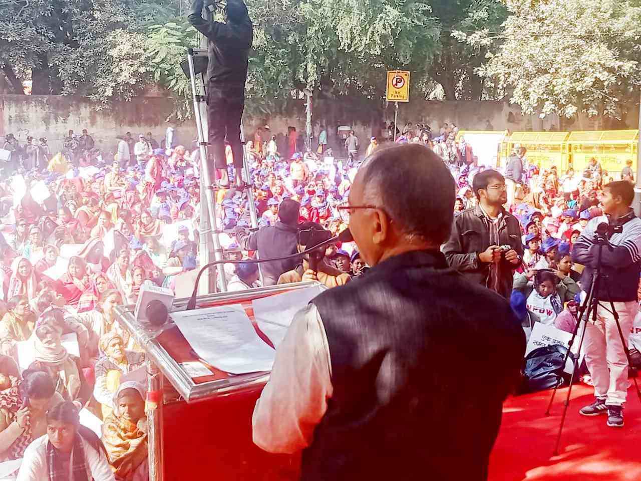 12 दिसंबर 2024, नई दिल्ली : भाकपा(माले) सांसदों – का. राजाराम सिंह और का. सुदामा प्रसाद ने घरेलू कामगारिनों के प्रदर्शन को संबोधित किया.