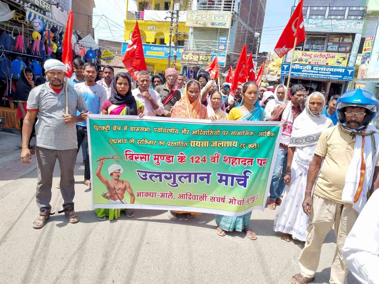 बुंडू में बिरसा मुंडा के बलिदान दिवस के अवसर पर ‘रायसा जलाशय रद्द करो’ के नारे के साथ एक उलगुलान मार्च निकाला और धुर्वा मोड़ स्थित बिरसा मुंडा की प्रतिमा पर माल्यार्पण कर उन्हें एक मिनट का मौन श्रद्धांजलि दी गई. आदिवासी संघर्ष मोर्चा के नेता सुखदेव मुंडा ने कहा कि हेमंत कैबिनेट से प्रस्तावित रायसा जलाशय परियोजना को चालू करने से यह पूरा क्षेत्र डूब जाएगा. क्षेत्र के विभिन्न पेड़-पौधों व जीव-जंतुओं पर इसका विपरीत असर पड़ेगा. ग्रामसभा व ग्रामीणों की सहमति के बिना और खुंटकटी कानून का उल्लंघन कर डैम बनाना बिरसा मुंडा के सपनों की हत्या है. भाकपा(माले) के जिला सचिव जगमोहन महतो ने कहा कि चार लेबर कोड के जरिए देश में जंगल, जमीन की लूट और कंपनी राज थोपने के खिलाफ एक बार फिर से उलगुलान खड़ा कर कारपोरेट-फासीवादी निजाम को पिछे धकेलने का संकल्प लेना होगा. कार्यक्रम में भाकपा(माले) राज्य कमेटी सदस्य मोहन दत्ता तथा दिलीप मांझी, सिमैला मुंडा, नुनीबाला मुंडा और अमलकांत महतो समेत अन्य दर्जनों लोग शामिल थे.