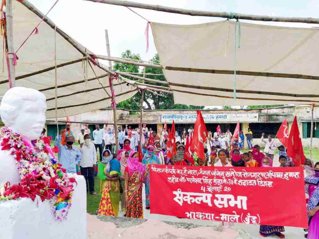 झारखंड के रांची जिले में पाँचपरगना किसान आंदोलन के नेता शहीद परमेश्वर सिंह मुण्डा के 31वें शहादत दिवस 4 जुलाई 2020 को भाकपा(माले) ने संकल्प दिवस के रूप में मनाया. लाॅकडाउन की वजह से बुण्डू (काॅलेज मोड़) स्थित प्रतिमा में माल्यार्पण व नुक्कड़ सभा ही हो सकी. फिर शहीद कामरेड परमेश्वर सिंह मुंडा के पैतृक गाँव हुमटा में एक संकल्प सभा का आयोजन किया गया. साथ ही राहे प्रखंड के इडिसेरेंग में भी शहीद कामरेड परमेश्वर सिंह मुंडा को याद किया गया. हुमटा में पंचायत स्तरीय गोलबंदी की गयी. शहीद साथी की प्रतिमा पर माल्यार्पण और दो मिनट का मौन धारण कर श्रद्धांजलि दी गई. सभा की शुरूआत शहीद गीत के साथ हुई. संकल्प सभा संबोधित करते हुए भाकपा(माले) राज्य सचिव जर्नादन प्रसाद ने कहा कि अर्थव्यवस्था मजबूतीकरण के नाम पर मोदी सरकार ने देश को खोखला कर दिया है. कोरोना महामारी के दौर में आम गरीब-मजदूरों को राहत देने के बजाय अपनी तिजोरी भरने में लगी हुई है. कोरोना संक्रमण से बचाने के लिए सुरक्षा किट, उपकरण, चिकित्सा केन्द्रों को समृद्ध करने के बजाय राजनीतिक खेल में लगे रहे. योजना विहीन लाॅकडाउन से सैकड़ों लोगों की जानें चली गयीं. कोरोना पूंजीवादी बीमारी है जिसे अमीरों के चलते गरीबों को झेलना पड़ रहा है. सरकार गरीबों को मदद के लिए खाते में 10 हजार रुपये देने से कन्नी काटती रही है. राष्ट्रभक्ति को अंधभक्ति में बदल दिया गया है. जनता के जरूरतों को पूरा करने में सरकार विफल रही है. झारखण्ड में प्राकृतिक संपदा को कंपनियों के हाथों गिरवी रखा जा रहा है. पाँचपरगना के हर गांव को परमेश्वर सिंह मुण्डा के आंदोलन के मुद्दों से जोड़ना होगा.