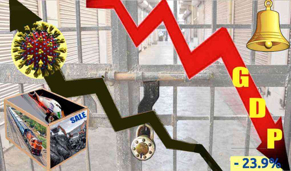सरकार, जो अब तक आर्थिक पतन को लगातार नकार रही थी, अब इस झटके को ‘दैवी प्रकोप’, लाॅकडाउन के फलस्वरूप हुए आर्थिक विध्वंस का स्वाभाविक परिणाम, बताकर रफा-दफा करना करना चाहती है. स्पष्ट है कि यह सरासर झूठ है. भारत में नोटबंदी के बाद से आर्थिक वृद्धि की दर बहुत अरसे से गिरती आ रही है. लाॅकडाउन लागू करने के बाद वृद्धि दर के विशाल मात्रा में नकारात्मक हो जाने के पहले ही, 2018-19 से सिलसिलेवार आठ तिमाहियों में भारत के सकल घरेलू उत्पाद की वृद्धि दर बड़ी तेजी से गिरती रही है – जो 8.2 प्रतिशत से गिरकर मार्च 2020 में समाप्त होने वाली तिमाही में 3.1 प्रतिशत पर पहुंच गई थीलम्बे अरसे से लगातार छाई मंदी ने अब अर्थतंत्र को इस खाई में गिरा दिया है. दूसरी बात यह है कि विभिन्न देशों ने किसी न किसी किस्म के लाॅकडाउन को अपनाया, मगर कहीं भी उसके कारण इतना भीषण आर्थिक विध्वंस नहीं हुआ. भारत में सबसे कठोर और अत्याचारी किस्म के लाॅकडाउन का सबसे ज्यादा विनाशकारी परिणाम हुआ है.