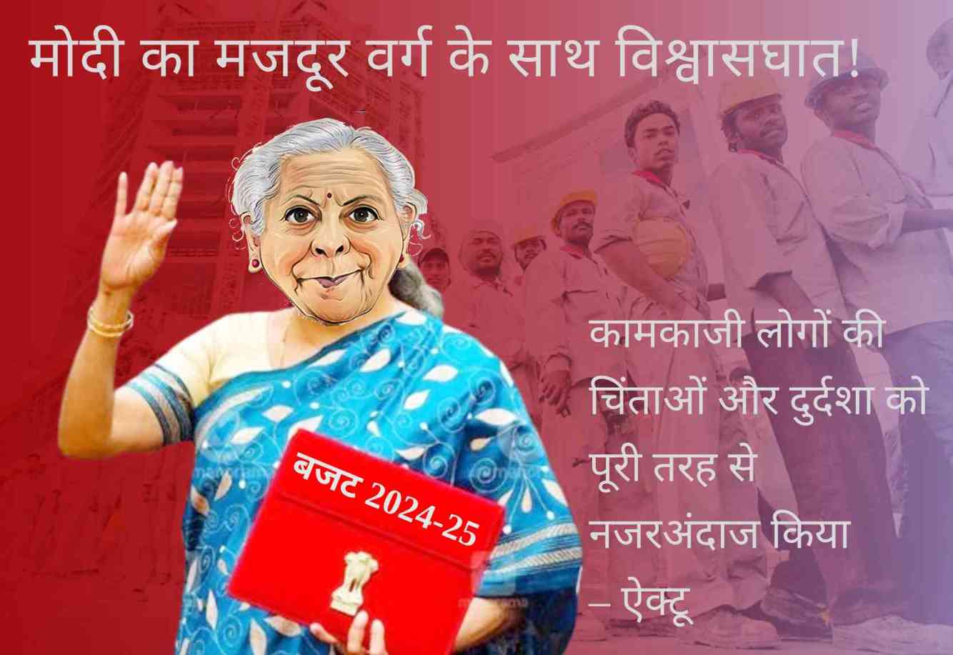 निराशाजनक बजट 2024-25 ने कामकाजी लोगों की चिंताओं और दुर्दशा को पूरी तरह नजरअंदाज किया है. इन चिंताओं को विभिन्न संघर्षों और साथ ही हाल के चुनावों के माध्यम से उठाया गया था. इन्हें बजट पूर्व परामर्श बैठक में वित्त मंत्री को केन्द्रीय ट्रेड यूनियनों के संयुक्त ज्ञापन में भी व्यक्त किया गया था. जबकि बजट बढ़ती असमानता की खतरनाक स्थिति को संबोधित नहीं करता है, यह अमीरों और शक्तिशाली लोगों के हितों को पूरा करना जारी रखता है. यह काॅर्पाेरेट नियंत्रण और अर्थव्यवस्था पर प्रभुत्व को ‘विकसित भारत’ के नाम पर और अधिक कसता है. जहां विदेशी काॅरपोरेट्स पर कर को 40% से घटाकर 35% कर दिया गया है, यह बजट पहले से ही बेहद कम काॅरपोरेट टैक्स को बढ़ाने का कोई प्रयास नहीं करता है, जबकि काॅरपोरेट टैक्स को राष्ट्रीय और वैश्विक स्तर पर बढ़ाने की लगातार मांग की जा रही है.