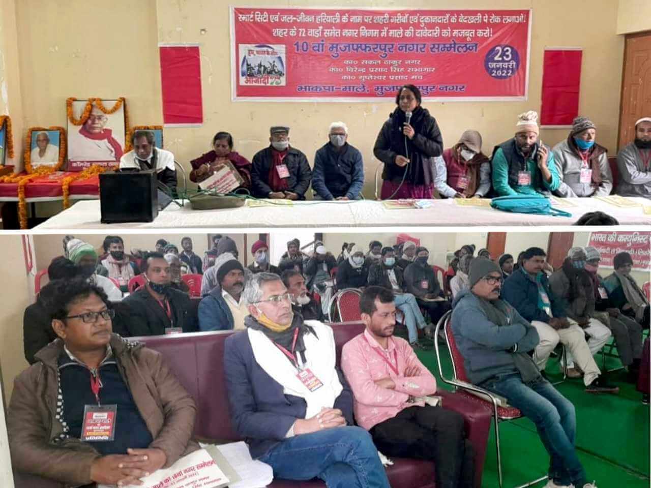 23 जनवरी 2022 को भाकपा(माले) का मुजफ्फरपुर नगर इकाई का दसवां सम्मेलन दीवान रोड स्थित किरण भवन (कामरेड सकल ठाकुर नगर, कामरेड विरेन्द्र प्रसाद सिंह सभागार, कामरेड गुप्तेश्वर प्रसाद मंच) संपन्न हुआ. झंडोत्तोलन व अमर स्वतंत्रता सेनानी सुभाष चंद्र बोस की जयंती पर उनके फोटो पर पुष्पांजलि अर्पित करने के साथ सम्मेलन शुरू हुआ.
