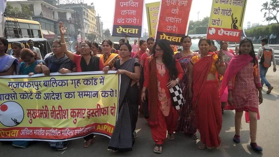 इसके मद्देनजर महिला संगठन ऐपवा ने विगत 15 फरवरी 2019 को मुख्यमंत्री नीतीश कुमार और भाजपा कोटे से मंत्री सुरेश शर्मा से इस्तीफा देने की मांग पर पटना में प्रतिवाद मार्च आयोजित किया. छज्जूबाग से निकलकर यह मार्च रेडियो स्टेशन, प्रफूजर रोड होते हुए डाकबंगला चौराहे तक गया जहां एक सभा आयोजित हुई.