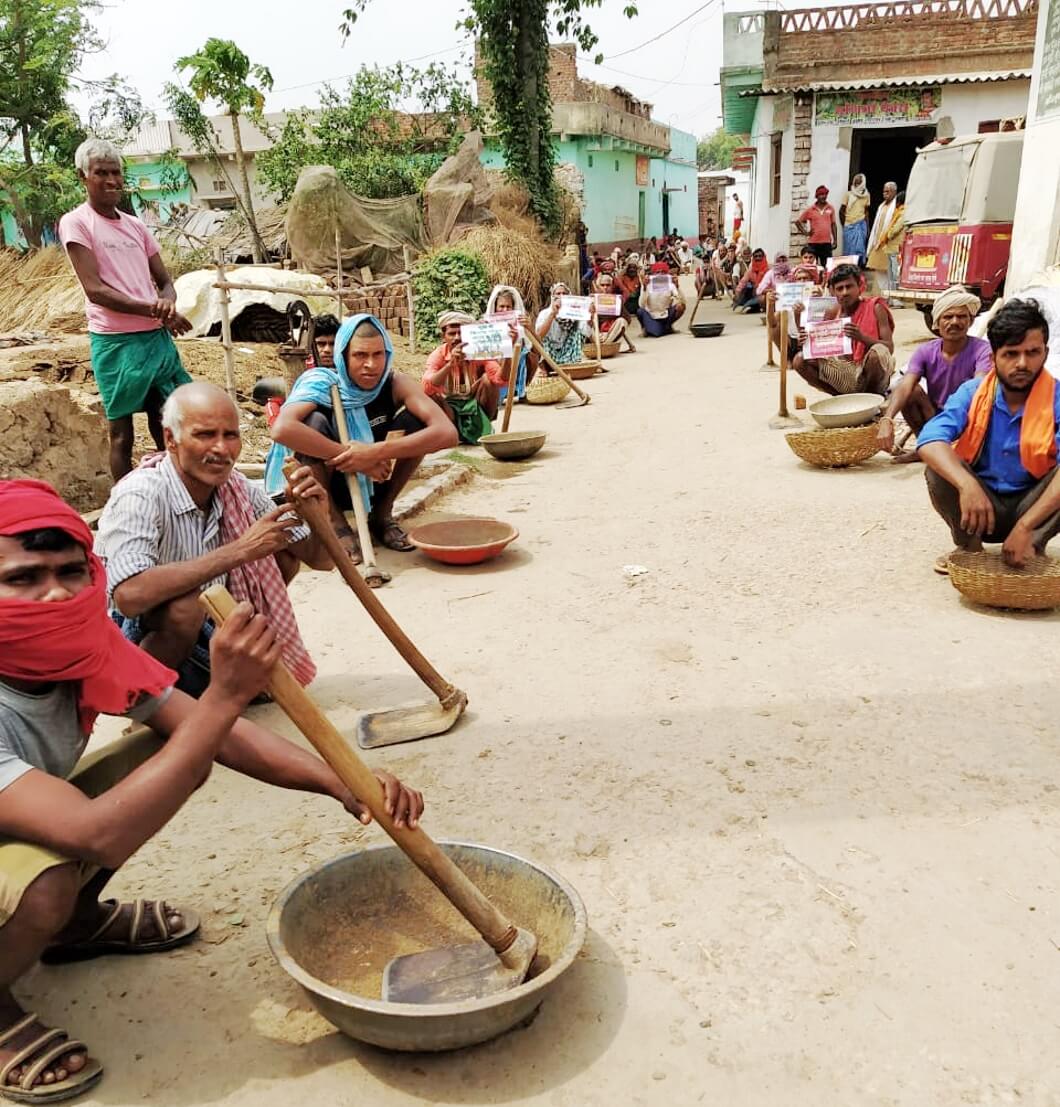 उत्तरप्रदेश: मनरेगा मजदूरों ने भी ताकत दिखायी विभिन्न जिलों में लाॅकडाउन का अनुपालन करते हुए धरना व अनशन आयोजित किया गया. मनरेगा मजदूरों ने इसमें बढ़-चढ़ कर हिस्सा लिया. एआईकेएम के राष्ट्रीय सचिव ईश्वरी प्रसाद कुशवाहा के नेतृत्व में गाजीपुर जिले में दिलदार नगर क्रय केन्द्र पर किसानों ने धरना देकर एसडीएम जमानियां को ज्ञापन सौंपा. पार्टी जिला मुख्यालय पर जिला सचिव रामप्यारे राम ने धरना दिया. इसके अलावा गहमर, कसेरा पोखरा, सराय मुरादअली, खानपुर, बरेसर, करंडा, लीलापुर, भुड़कुडा़, मैनपुर, हरिबम्बमपुर, हीराधरपुर, हथौडा आदि गावों में किसान महासभा व खेग्रामस ने धरना दिया.