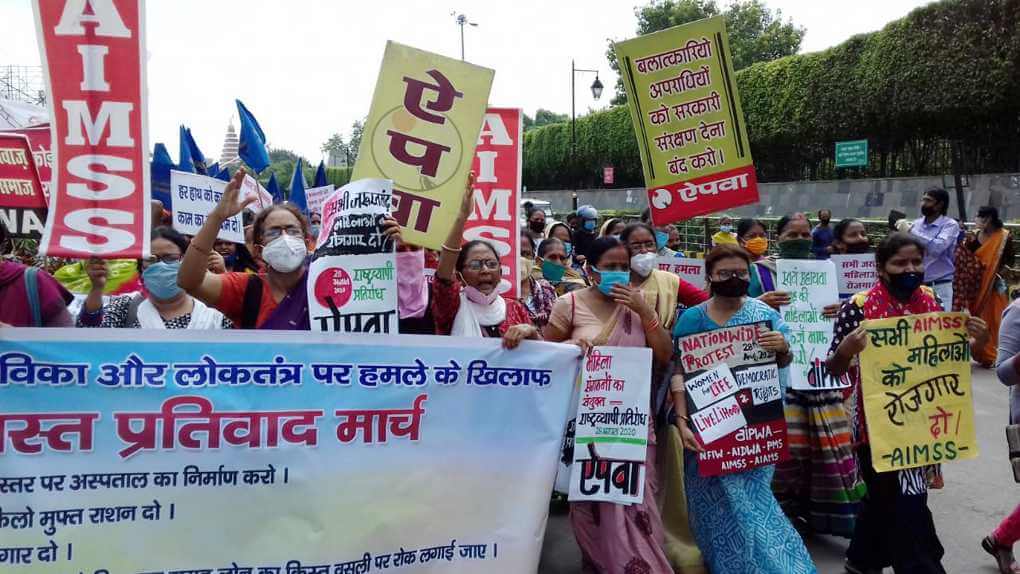 देश के 6 वाम महिला संगठनों के आह्वान पर महिलाओं के जीवन, जीविका और लोकतांत्रिक अधिकारों की रक्षा, सभी जरूरतमंद महिलाओं को रोजगार, सभी के स्वास्थ्य सुविधा हेतु हर पंचायत में सरकारी अस्पताल बनाने, स्वंय सहायता समूह का लोन माप करने और सभी तरह के छोटे लोन की वसूली पर 31 मार्च 2021 तक रोक लगाने की मांग पर 28 अगस्त 2020 को पूरे देश में प्रतिवाद दर्ज किया गया. ऑल इंडिया डेमोक्रेटिक वुमेन्स एसोसिएशन (ऐडवा), नेशनल फेडरेशन ऑप इंडियन वीमेन (एनएपआइडब्लू), ऑल इंडिया प्रोग्रेसिव वीमेन्स एसोसिएशन (ऐपवा), प्रगति महिला संगठन (पीएमएस), ऑल इंडिया अग्रगामी महिला समिति (एआइएएमएस) और अखिल भारतीय महिला सांस्कृतिक संगठन (एआइएमएसएस) ने संयुक्त रूप से राष्ट्रव्यापी विरोध प्रदर्शन का ऐलान किया था.