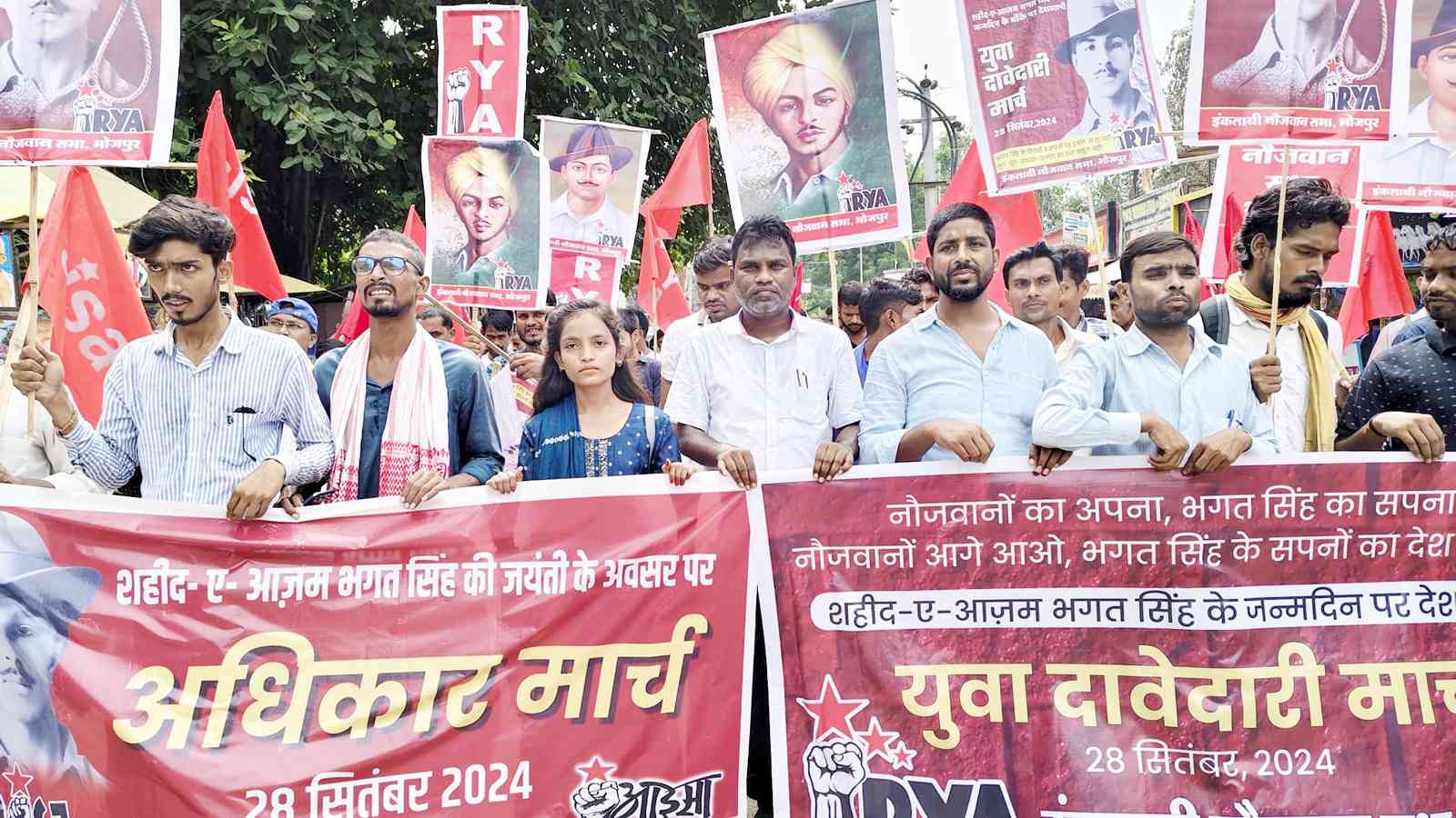 झारखण्ड के लोहरदगा में राज्य स्थानीय निकाय कर्मचारी महासंघ के तत्वावधान में शहीदे आजम भगतसिंह की 117वीं जयन्ती मनाई गई. कार्यक्रम को संबोधित करते हुए अखिल भारतीय म्युनिसिपल एंड सेनिटेशन वर्कर्स फेडरेशन के राष्ट्रीय उपाध्यक्ष महेश कुमार सिंह ने कहा कि जिस तरह से गुलाम भारत में मंहगाई, बेरोजगारी, उत्पीड़न और शोषण-दोहन तथा दमन था, आज भी वही हाल है. अंग्रेज सरकार कहती कुछ थी और करती कुछ थी. ठीक उसी प्रकार की कार्रवाई आज भी जारी है. नौजवान नौकरी के लिए आज भी जान दे रहे हैं. केन्द्र की मोदी सरकार कार्पोरेट पूजिपतियों के हाथों का खिलौना बनी हुई है और हर स्तर पर निजीकरण को बढ़ावा दे रही है. देश के बैंकों में जमा गरीबों के पैसे को निकाल कर पूंजीपतियों के हवाले किया जा रहा है. आजादी के अमृत काल में धर्म व संप्रदाय के आधार पर बंटता दीख रहा है. देश बंटता हुआ दिखाई पड़ रहा है.