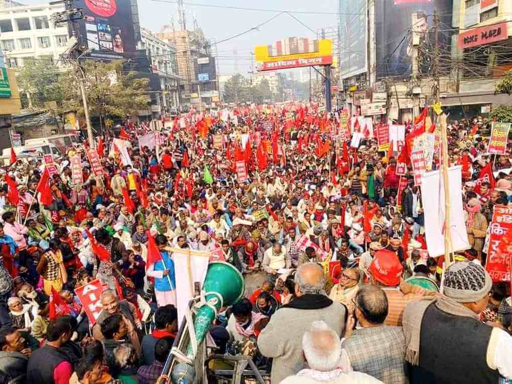 कड़ाके की ठंड के बावजूद 29 दिसंबर को पटना की सड़कों पर हजारों की तादाद में किसानों के उमड़े जनसैलाब ने दिल्ली और पूरे देश में चल रहे किसान आंदोलन में एक नया मोड़ ला दिया है. तीनों काले कृषि कानूनों के खिलाफ विगत एक महीने से दिल्ली में चल रहे किसान आंदोलन को भाजपा व संघ गिरोह ने विभिन्न तरीकों से बदनाम करने व उसमें फूट डालने की ही कोशिश की है. उसमें उनका सबसे बड़ा तर्क यह था कि यह आंदोलन पंजाब का आंदोलन है, बड़े फार्मरों का आंदोलन है, बिहार जैसे राज्यों में तो किसी भी प्रकार का आंदोलन है ही नहीं. दरअसल बिहार में मंडियों को भाजपा-जदयू सरकार ने बहुत पहले 2006 में ही खत्म कर दिया है. वे इसी बात को प्रचारित कर रहे थे कि मंडियों की व्यवस्था खत्म हो जाने से किसानों को ही फायदा होगा कि वे कहीं भी अपना अनाज बेच सकते हैं. भाकपा-माले महासचिव काॅ. दीपंकर भट्टाचार्य ने भाजपा द्वारा फैलाए जा रहे इस भ्रम पर टिप्पणी करते हुए कहा कि यदि मंडियों को खत्म कर देने से किसानों की हालत में सुधार होता, तो आज बिहार के किसान सबसे खुशहाल होते. लेकिन हकीकत ठीक विपरीत है. बिहार के किसानों की हालत देश में सबसे खराब है. यहां एमएसपी पर कभी धान अथवा अन्य फसलों की खरीददारी नहीं होती. यहां के किसान 800-900 रु. प्रति क्विंटल की दर से अपना धान बिचैलियों के हाथ बेचने को मजबूर हैं. दिल्ली के बाॅर्डर को घेर चुके पंजाब के किसान भी लगातार कह रहे थे कि मंडियों को खत्म कर देने से बिहार के किसानों की जो हालत हुई है, वही चीज अब हमारे ऊपर थोपा जा रहा है. इस कारण बिहार से किसान आंदोलन की एक मजबूत आवाज उठना आज की सबसे फौरी मांग थी.