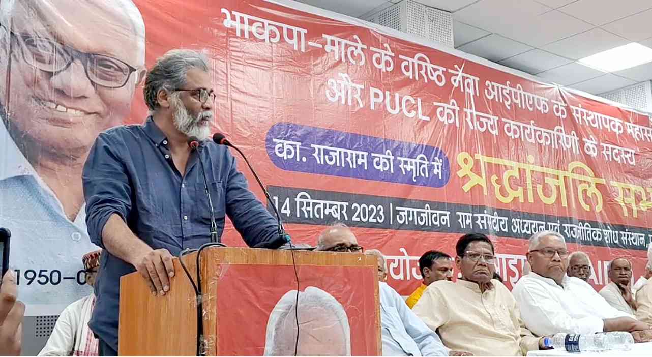 इस मौके पर का. दीपंकर ने कहा कि का. राजाराम हमारी पार्टी में एक बड़ी भूमिका निभाते थे और विभिन्न जनांदोलनों के बीच एक सेतु का काम करते थे. पार्टी जब 1980 के दशक में एक छलांग रही थी, तो राजाराम जी गांवों के गरीब किसानों के संघर्ष को शहर के छात्र-नौजवान, औद्योगिक मजदूरों व कमचारियों, महिलाओं और दलितों-आदिवासियों के व्यापक आन्दोलनों के साथ जाड़ने के पार्टी के प्रयासों की अग्रिम पंक्ति में खड़े रहे. तमाम दमन झेलते हुए राजाराम जी ने पार्टी की इस जिम्मेदारी को निभाया. अब यह काम हमें करना है. उनकी इच्छा थी कि वे मणिपुर जाएं और वहां के हालात से बिहार की जनता को अवगत कराएं और वहां चल रही भाजपा की साजिशों के खिलाफ बिहार के लागों को बीच कोई पहलकदमी लें. हम सबको राजाराम बनकर दिखाना है, क्योंकि आज देश एक अभूतपूर्व स्थिति से गुजर रहा है और ऐसे समय में उनकी जरूरत सबसे अधिक थी. उन्होंने कहा कि हर दिन भाजपा की नई साजिशों का पर्दाफाश हो रहा है. चुनाव आयोग के गठन में सुप्रीम कोर्ट के किसी प्रतिनिधि की जगह सरकार के ही कैबिनेट के किसी मंत्री को शामिल करने वाला बिल चुनाव आयोग को जेबी संगठन बनाने वाला कदम है. 2019 का चुनाव भाजपाइयों ने पुलवामा व बालाकोट के नाम पर जीता था, इस बार वे पूरे देश में एक बड़े उन्माद-उत्पात के अभियान में लगे हुए हैं. लव जिहाद, धर्मान्तरण व सनातन को मुद्दा बनाकर 30 सितंबर से किसी शौर्य जागरण यात्रा की चर्चा हो रही है.