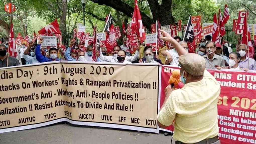 भाजपा सरकार की मजदूर विरोधी, किसान विरोधी, जन विरोधी व देश विरोधी नीतियों के खिलाफ तमाम केंद्रीय ट्रेड यूनियनों तथा कर्मचारी संघों/महासंघों ने 9 अगस्त को ‘भारत बचाओ’ दिवस मनाया और इस दिन सत्याग्रह, जेल भरो, जुलूस व रैलियां जैसे कार्यक्रम संगठित किए जिसे भारी जन समर्थन प्राप्त हुआ. मजदूरों, किसानों और आम जनता ने अपने-अपने कार्य-स्थलों, यूनियन दफ्तरों तथा सड़कों पर इन कार्यक्रमों में भागीदारी की.