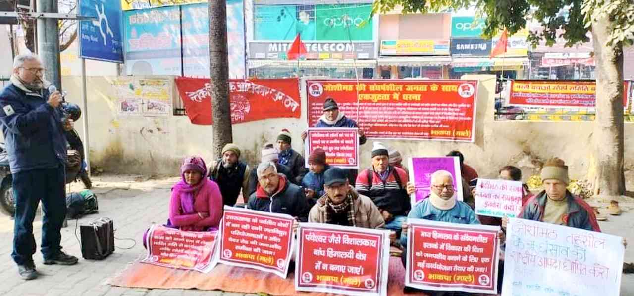 धरने को संबोधित करते हुए भाकपा(माले) राज्य सचिव राजा बहुगुणा ने कहा कि, ‘उत्तराखंड का ऐतिहासिक जोशीमठ नगर एक अभूतपूर्व गंभीर संकट से गुजर रहा है. यह ऐसा संकट है जिसने इस महत्वपूर्ण शहर के अस्तित्व को ही खतरे में डाल दिया है. लेकिन इस संकट से निपटने के लिए जिस तत्परता और तेजी की आवश्यकता है, राज्य सरकार की कार्यवाही में वह नदारद है. इस संकट का एक पहलू यह भी है कि राज्य सरकार ने लगभग 14 महीने से इस संकट को लेकर जोशीमठ की जनता द्वारा दी जा रही चेतावनी को अनदेखा किया. पहले राज्य सरकार ने आसन्न संकट को अनदेखा किया और अब वह संकट से कच्छप गति से निपट रही है. बल्कि संकट के आंकड़ों को छुपाने के लिए शइसरोश समेत सभी संस्थाओं को आपदा की जानकारी जनता को दिए जाने तक पर रोक लगा दी गई है. इस आपात स्थिति में प्रधानमंत्री को सीधे हस्तक्षेप कर रेसक्यू ऑपरेशन को जोशीमठ बचाओ संघर्ष समिति के साथ तालमेल करते हुए, सीधे अपने हाथ में लेकर, युद्ध स्तर पर राहत कार्य को अंजाम देना चाहिए. ताकि राहत कार्य में बना गतिरोध अविलंब दूर हो सके. अन्यथा भारी जानमाल के नुकसान को रोक पाना दुष्कर कार्य साबित होगा. अब जोशीमठ हेतु पूर्ण जवाबदेही केंद्र सरकार की तय होनी चाहिए.’