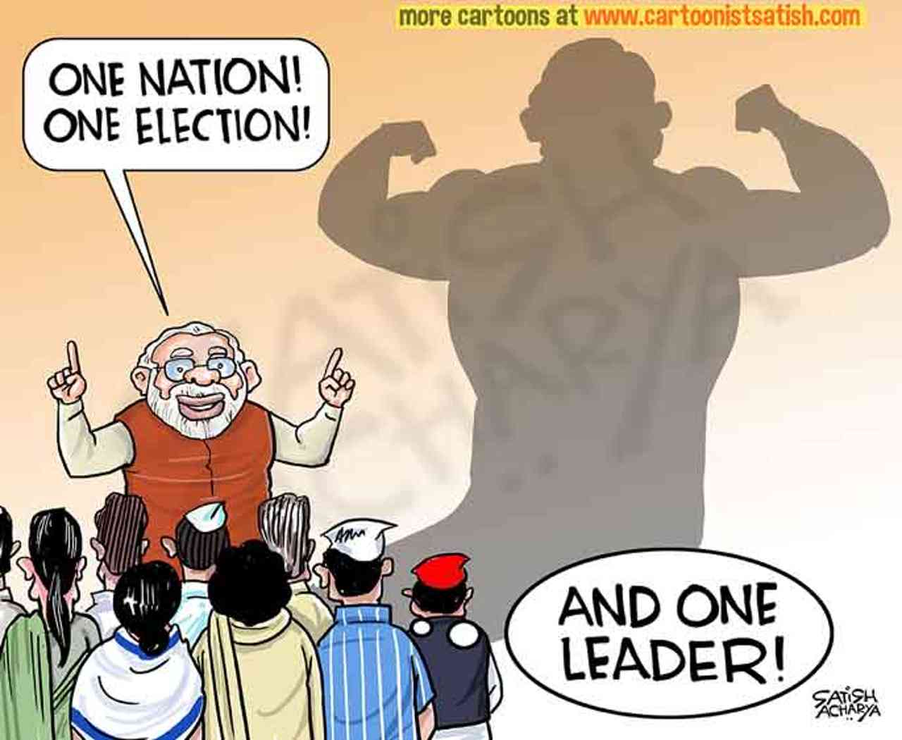 ‘एक राष्ट्र, एक चुनाव’ प्रस्ताव पर कैबिनेट की मोहर इस दिशा में एक और कदम है. यह राज्य के चुनावों को केंद्र के चुनावों के अधीन करने का सीधा प्रयास है. लगातार डबल इंजन सरकार का नारा दोहराकर, केंद्र सरकार स्पष्ट रूप से कह रही है कि सत्ता में रहने वाली पार्टी को देश के सभी स्तरों पर सत्ता में रहना चाहिए. यह बदलाव निस्संदेह भारत के संसदीय लोकतंत्र को राष्ट्रपति प्रणाली में बदल देगा. मोदी पंथ अब इतना खुलकर सामने आ गया है कि चुनावों में सीधे मोदी के नाम पर वोट मांगे जाते हैं. ‘एक राष्ट्र, एक चुनाव’ का नारा वास्तव में ‘एक पार्टी, एक नेता’ का नारा है.