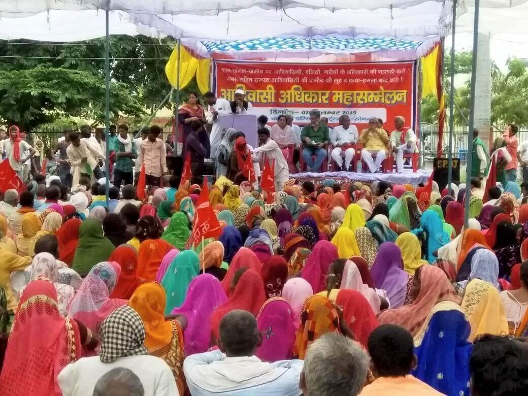 भाजपा आदिवासियों-दलितों से जल-जंगल-जमीन पर उनके पुश्तैनी अधिकारों को छीन लेना चाहती है. यह बात भाकपा(माले) के राष्ट्रीय महासचिव का. दीपंकर भट्टाचार्य ने सात सितंबर को राबट्र्सगंज (सोनभद्र) कचहरी परिसर में पार्टी द्वारा आयोजित आदिवासी अधिकार सम्मेलन में कही. उम्भा नरसंहार के विरोध में सोनभद्र, मिर्जापुर, चंदौली जिलों के आदिवासी बहुल क्षेत्रों में एक महीने तक चले ‘आदिवासी अधिकार व न्याय यात्रा’ के समापन पर इस सम्मेलन का आयोजन किया गया था.