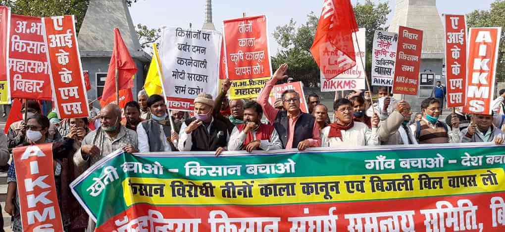 मोदी सरकार के तीन ‘काले’ कृषि कानूनों की मुकम्मल वापसी के लिए जारी किसान आंदोलन के समर्थन में विगत 14 दिसंबर 2020 को पूरे देश में किसानों के प्रदर्शन हुए. जिला मुख्यालयों पर होने वाले इन प्रदर्शनों का आह्वान अखिल भारतीय किसान संघर्ष समन्वय समिति ने किया था. अखिल भारतीय किसान महासभा और भाकपा(माले) से जुड़े तमाम जनसंगठनों ने पूरे देश में इसे उत्साहपूर्वक आयोजित किया.