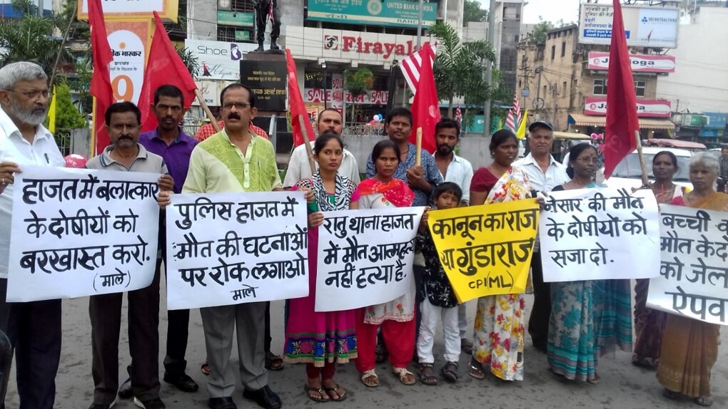 रातू थाना हाजत में नेसार की मौत, सहारा सिटी थाना हाजत में बलात्कार और लातेहार में मासूम बच्ची की पटककर मौत के दोषियों को दंडित करने की मांग पर 26 अगस्त 2019 को भाकपा(माले) की रांची नगर कमिटी के बैनर तले एक प्रतिवाद मार्च निकाला गया. ‘कानून का राज या गुंडा राज, मुख्यमंत्री जवाब दो’, ‘निसार की मौत के दोषियों को सजा दो’. ‘सहारा सिटी थाना हाजत में बलात्कार और लातेहार में मासूम बच्ची की मौत के दोषी पुलिस अधिकारियों को बरखास्त करो’ के जोरदार नारों के साथ प्रतिवाद मार्च माले राज्य कार्यालय से शुरू होकर अल्बर्ट एक्का चौक पहुंचा. प्रतिवाद मार्च को संबोधित करते हुए भाकपा(माले) जिला सचिव का. भुवनेश्वर केवट ने कहा कि ये घटनायें बताती हैं कि झारखंड पुलिस मध्ययुगीन बर्बरता की ओर बढ रही है. एआईपीएफ के वरिष्ठ नेता का. बशीर अहमद ने ऐसी बर्बरतापूर्ण पुलिसिया कार्रवाई को लोकतांत्रिक व्यवस्था के लिए घातक बताया. प्रतिवाद मार्च में सभी घटनाओं में दोषियों पर कार्रवाई करने और परिजनों को अविलंब मुआवजा देने की मांग की गई. कार्यक्रम में माले राज्य कमिटी सदस्य अनिल अंशुमन, भीम साहू, वीरेन्द्र श्रीवास्तव, बिनोद ठाकुर, एनामुल हक, उमेश राम, बबलू अंशारी, ऐती तिर्की, सिंगी खलखो, एल्लिसबा एक्का, सीमा कोरिया, नजिया खातून आदि शामिल थे.