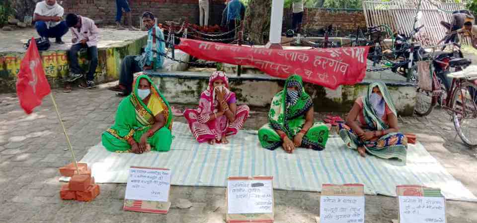 सीतापुर जिले में जलालीपुर में मजदूरों की बकाया मनरेगा मजदूरी के भुगतान को लेकर खेग्रामस ने हरगांव ब्लाॅक मुख्यालय पर 22 जुलाई से अनिश्चितकालीन क्रमिक धरना शुरू किया. पहले दिन तीन महिलाएं का. रामसनेही वर्मा के नेतृत्व में धरने पर बैठीं; आगे प्रमोद कुमार ने नेतृत्व किया. उन्होंने कहा कि मोदी-योगी की सरकारें मनरेगा में मजदूरों को रोजगार देने की डींग मार रही हैं, लेकिन मनरेगा में काम व दाम पाने को लेकर मजदूर एक माह से भटक रहे हैं. मजदूरी पाने के लिए धरना-प्रदर्शन करना पड़ रहा है. तीन दिनों से चल रहे धरने की कोई सुनवाई नहीं हुई है. उन्होंने कहा कि जब तक बकाया मजदूरी का भुगतान नहीं हो जाएगा, धरना जारी रहेगा. छत्रपाल, मनोज कुमार व अशर्फी लाल ने धरने को जारी रखा. पांचवें दिन खंड विकास अधिकारी के हस्तक्षेप के बाद दबंग व लुटेरे प्रधान को आखिरकार मजदूरी का भुगतान करना पड़ा. भुगतान की एडवाइस काॅपी धरने पर आकर ग्राम पंचायत अधिकारी ने दी. इसके बाद धरना समाप्त हो गया और पांच दिनों के संघर्ष के बाद मजदूरों की जीत हुई.