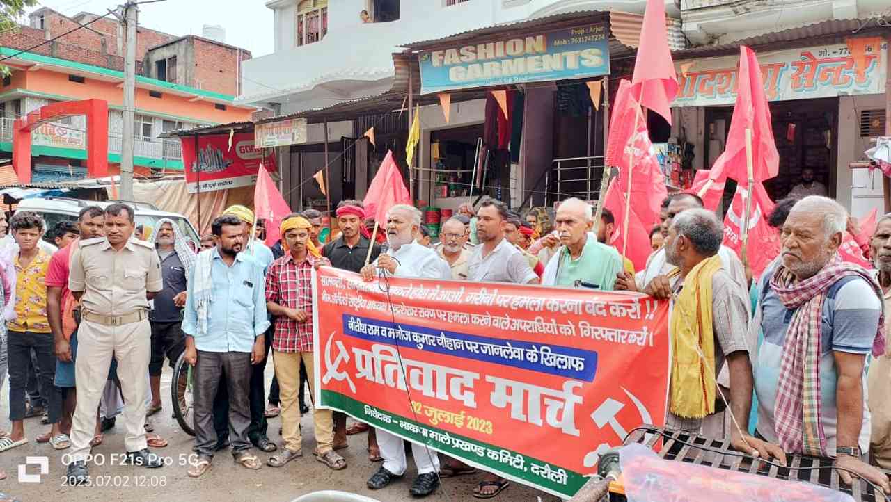 सीवान: सीवान जिले के दरौली प्रखंड में विगत दिनों गरीबों पर सामंती ताकतों के हमले की कई घटनायें घटित हुईं. इनके खिलाफ विगत 2 जुलाई 2023 को दरौली स्थित भाकपा(माले) कार्यालय से एक प्रतिवाद मार्च निकाला गया जो परमेश्वरी स्थान छावनी और चौक बाजार होते थाना मोड़ तक पहुंचा. थाना मोड़ पर एक सभा आयोजित हुई.