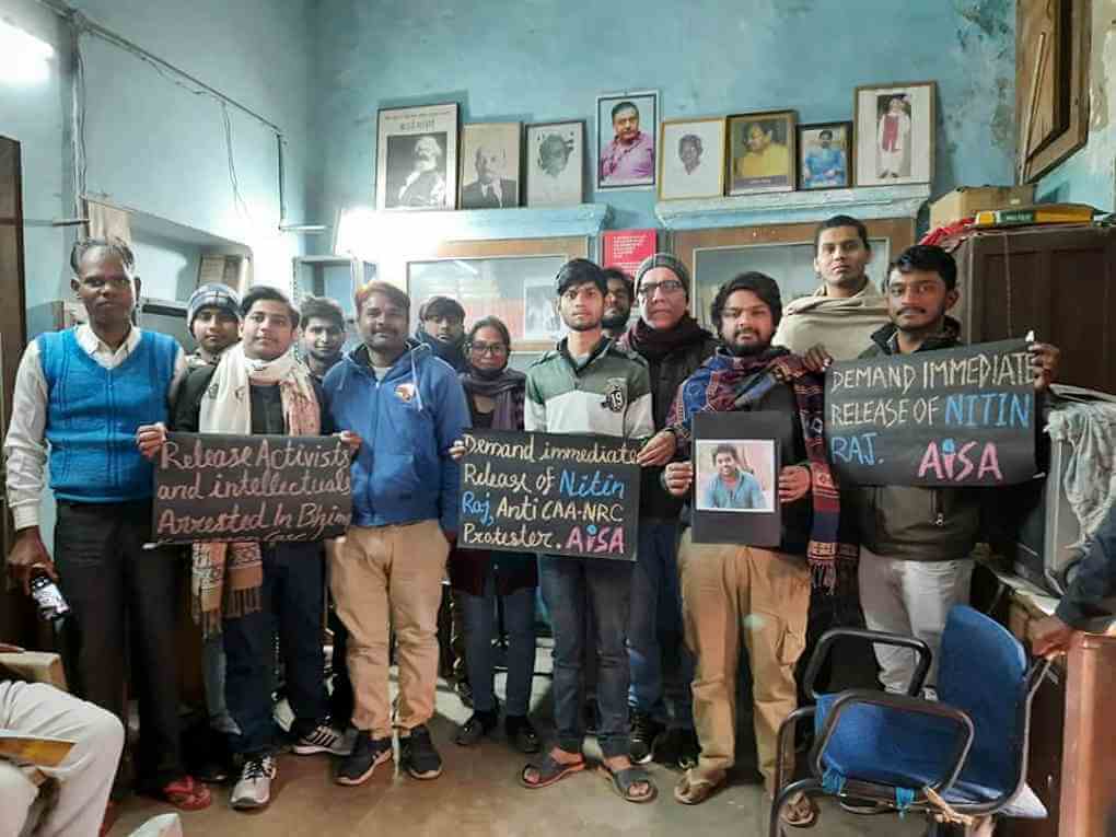 आइसा नेता शिवम सफीर ने उत्तर प्रदेश सरकार द्वारा पिछले तीन वर्षों में दलितों के उत्पीड़न की बढ़ती घटनाओं का ज़िक्र करते हुए कहा कि योगी सरकार आने के बाद से ही अपनी विचारधारा के मुताबिक दलित विरोधी काम कर रही है. इसी कड़ी में हमारे साथी नितिन राज को पांचवीं बार जेल भेज दिया गया है जो सरासर अन्याय है. उनका अपराध बस इतना था कि उन्होंने असंवैधानिक सीएए-एनआरसी के खिलाफ अपना प्रतिरोध दर्ज कराया था. हमें नितिन राज की रिहाई और ऐसे हर दमन के खिलाफ अपनी आवाज बुलंद करनी होगी और संघर्ष को तेज करना होगा.