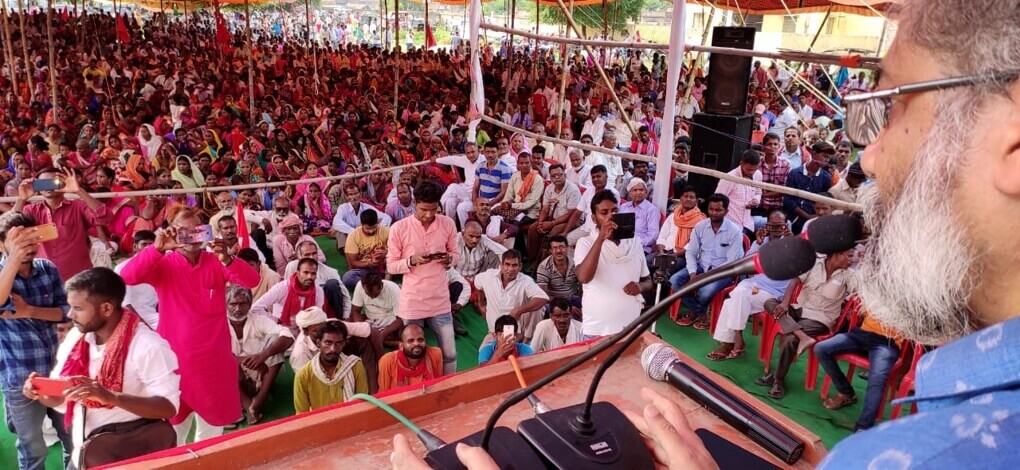 का. दीपंकर ने कहा कि दिल्ली-पटना में ऐसी सरकारें हैं जो विरोध की आवाज को उठने नहीं देना चाहती. यहां तक कि पंचायत में भी वे यही चाहती हैं. वे सरकार, सत्ता और बन्दूक के बल पर लोकतंत्र और जनता के अधिकार को छीन लेना चाहती हैं. भोजपुर में ऐसे लुटेरों-हत्यारों के खिलाफ संघर्षों की शानदार विरासत रही है. भाकपा(माले) इस शानदार विरासत को आगे बढ़ाएगी और तमाम शहीदों के सपनों को मंजिल तक पहुंचायेगी.
