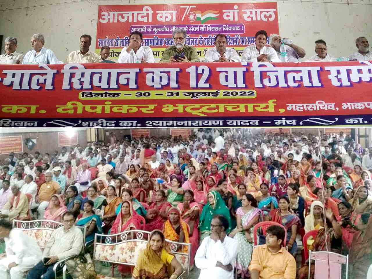 भाकपा(माले) का 12वां सिवान जिला सम्मेलन शहीद कामरेड चंद्रशेखर नगर (सिवान) के कामरेड पवन शर्मा सभागार (टाउन हॉल) में शहीद कामरेड श्याम नारायण यादव मंच पर आयोजित हुआ. सम्मेलन में 450 से ज्यादा प्रतिनिधियों, अतिथियों व प्रेक्षकों ने हिस्सा लिया.