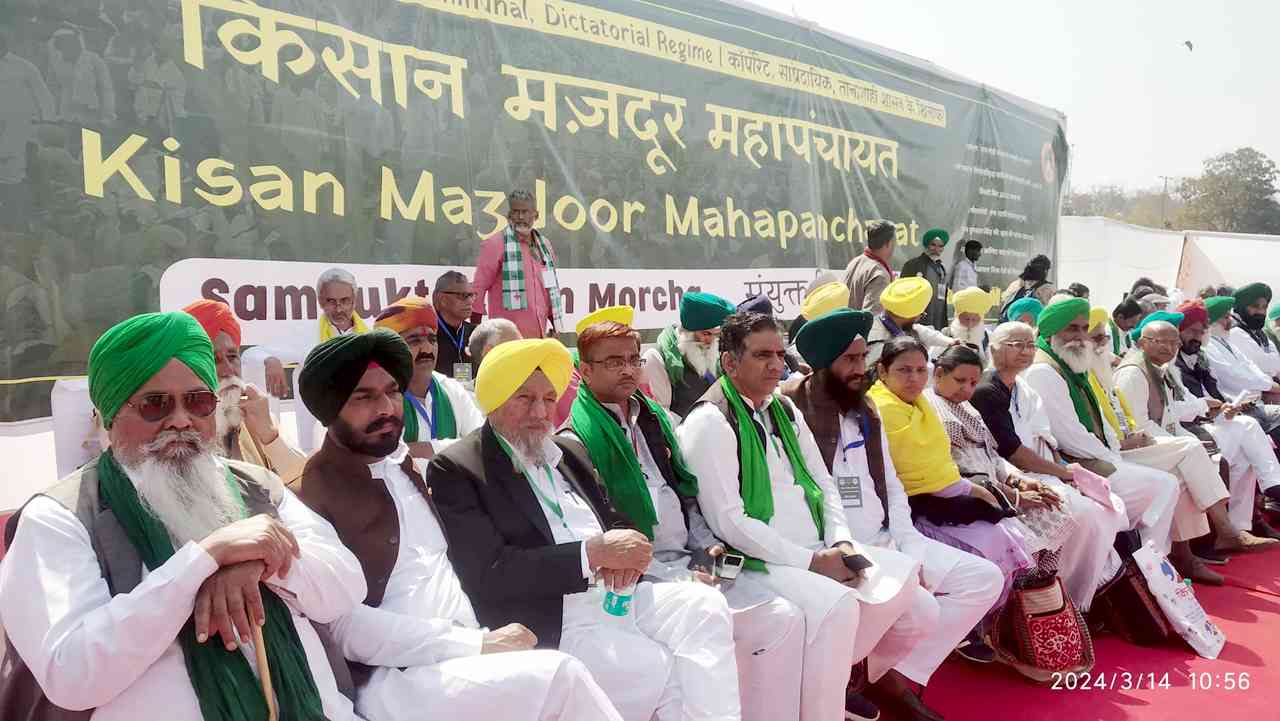 14 मार्च 2024 को दिल्ली के रामलीला मैदान में देश के कोने-कोने से पहुंचे हजारों किसानों के हुजूम ने एक विशाल किसान-मजदूर महापंचायत का आयोजन कर केंद्र की मोदी सरकार को चेतावनी दी कि वह देश के किसानों से किए अपने वायदों को पूरा करे. एमएसपी गारंटी कानून, किसानों-मजदूरों की सम्पूर्ण कर्ज माफी, 26 हजार रुपया न्यूनतम वेतन, मनरेगा में 200 दिन का काम व 600 रुपए मजदूरी, किसानों को 10 हजार रूपये पेंशन सहित उन सभी मांगों का समाधान तत्काल करे जो लम्बित पड़ी हैं. सरकार किसानों, मजदूरों, नौजवानों के आंदोलनों पर क्रूर दमन रोके, लखीमपुर काण्ड के आरोपी केन्द्रीय गृह राज्य मंत्रा अजय मिश्रा टेनी को बर्खास्त करे, देश के सरकारी व सार्वजनिक संसाधनों की लूट को रोके और देश के लोकतांत्रिक, संघीय व धर्मनिरपेक्ष ढांचे पर हमला बंद करे.