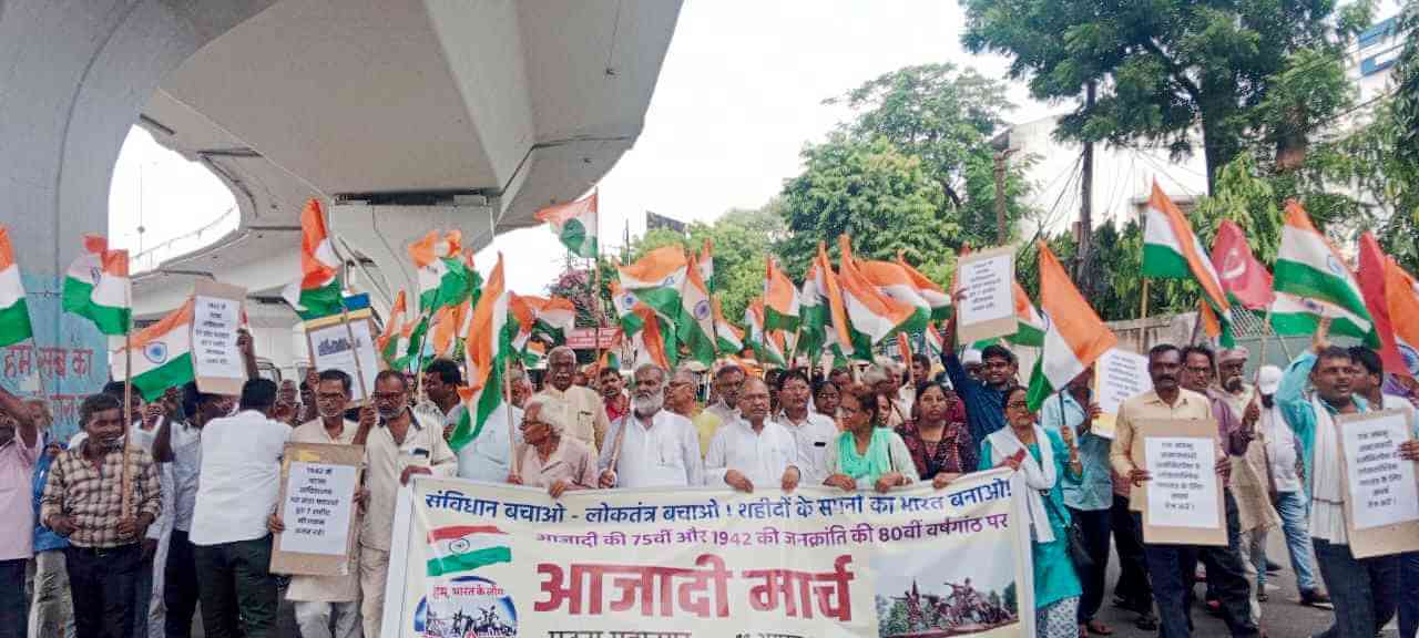 आजादी की 75वीं और 1942 की जनक्रांति की 80वीं वर्षगांठ के अवसर पर 11 अगस्त 2022 को पूरे बिहार मे तिरंगे झंडे के साथ ‘आजादी मार्च’ का आयोजन किया गया. राजधानी पटना में बुद्ध स्मृति पार्क से यह मार्च निकला जो स्टेशन गोलबंर, जीपीओ गोलबंर होते हुए विधानसभा स्थित शहीद स्मारक पहुंचा और वहां पर 1942 में आज ही के दिन सचिवालय पर देश का झंडा फहराने के क्रम में शहीद हुए 7 नौजवानों – उमाकांत प्रसाद सिन्हा, देवीपद चौधरी, रामानन्द सिंह, सतीश प्रसाद झा, जगपति कुमार, राजेन्द्र सिंह व रामगोविंद सिंह – की मूर्ति पर फूल चढ़ाकर उन्हें श्रद्धांजलि दी गई. आज आजादी के आंदोलन के महान क्रांतिकारी खुदीराम बोस का भी शहादत दिवस है. उन्हें भी श्रद्धांजलि दी गई.
