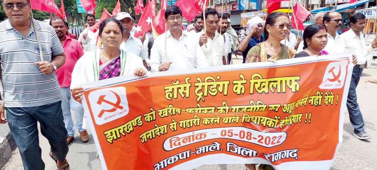 एक तरफ पूरा राज्य सुखाड़ का दंश झेल रहा है, बारिश नहीं हो रही है. दूसरी तरफ विधायकों पर नोटों की बारिश हो रही है. जब से झारखंड बना है तब से हॉर्स ट्रेडिंग का खेल चल रहा है. सरकार के खिलाफ ईडी का इस्तेमाल करने के साथ-साथ, भाजपा इस राज्य को खरीद-फरोख्त की राजनीति का अड्डा बना देना चाहती है. सरकार को अस्थिर करने की साजिश लंबे समय से चल रही है. पिछले दिनों हावड़ा में झारखंड के जामताडा विधायक इरफान अंसारी सहित तीन विधायकों की गाड़ी से लाखों रुपये बरामद हुए. इससे साफ साबित होता है कि जनता के जनादेश को बाजार में खुलेआम बेचा जा रहा है. विधायकों को खरीद कर भाजपा सत्ता को हड़पना चाहती है. भाजपा की इस घिनौनी साजिश के खिलाफ भाकपा(माले) ने 5 अगस्त के दिन राज्यव्यापी प्रतिवाद कार्यक्रम आयोजित किए.