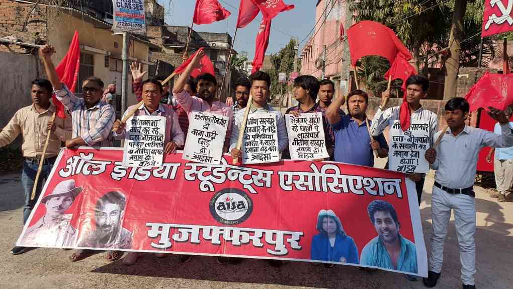 3 मार्च को आइसा-आरवाइए के राज्यव्यापी प्रतिरोध के तहत पटना के कारगिल चौक पर नीतीश कुमार का पुतला दहन किया गया. समस्तीपुर में ‘रोजगार के बदले लाठी क्यों-नीतीश सरकार जवाब दो’, ‘19 लाख रोजगार-मांग रहा युवा बिहार’, ‘छात्र-नौजवानों के भविष्य पर हमला बंद करो’, ‘लाठी-गोली की सरकार नहीं चलेगी’, ‘पटना-दिल्ली खोलो कान-लेकर रहेंगे रोजगार’ आदि नारों के साथ मालगोदाम चौक स्थित भाकपा(माले) कार्यालय से प्रतिवाद मार्च निकालकर बाजार क्षेत्र होते हुए स्टेशन चौराहा पहुंचकर सभा की गई. आइसा जिलाध्यक्ष लोकेश राज की अध्यक्षता व इनौस जिला सचिव आशिफ होदा के संचालन में हुई सभा को भाकपा(माले) नेता सुरेन्द्र प्रसाद सिंह व आइसा जिला सचिव सुनील कुमार समेत कई लोगों ने संबोधित किया. अंत में मुख्यमंत्री नीतीश कुमार का पूतला फूंका गया.