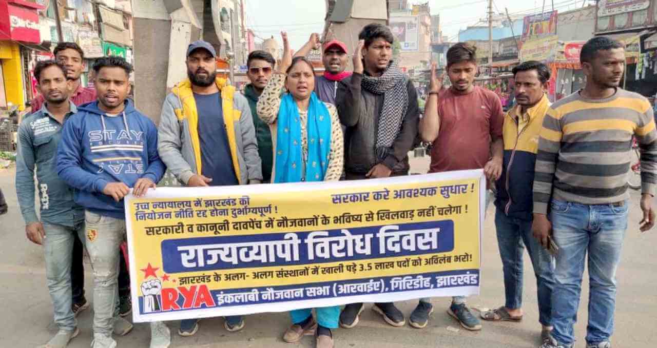 झारखंड हाईकोर्ट ने नियोजन नियमावली 2021 को रद्द करते हुए, तमाम प्रतियोगी परीक्षाओं पर रोक लगाते हुए परीक्षा कैलेंडर को वापस लेने का आदेश दिया है. इस वजह से लाखों झारखंडी युवा जो नौकरी की तैयारी में लगे थे, परीक्षाएं दे रहे थे, उनका भविष्य अधर में लटक गया है. युवा संगठन आरवाईए ने इसके खिलाफ विगत 21 दिसंबर 2022 को राज्यव्यापी विरोध दिवस मनाते हुए पूर्वनियोजित सभी परीक्षाओं को समय पर करानेे, झारखंड नियोजन नीति 2022 को अविलंब लागू करने और राज्य में रिक्त 3.5 लाख सरकारी पदों पर बहाली सुनिश्चित करने की मांग की है.