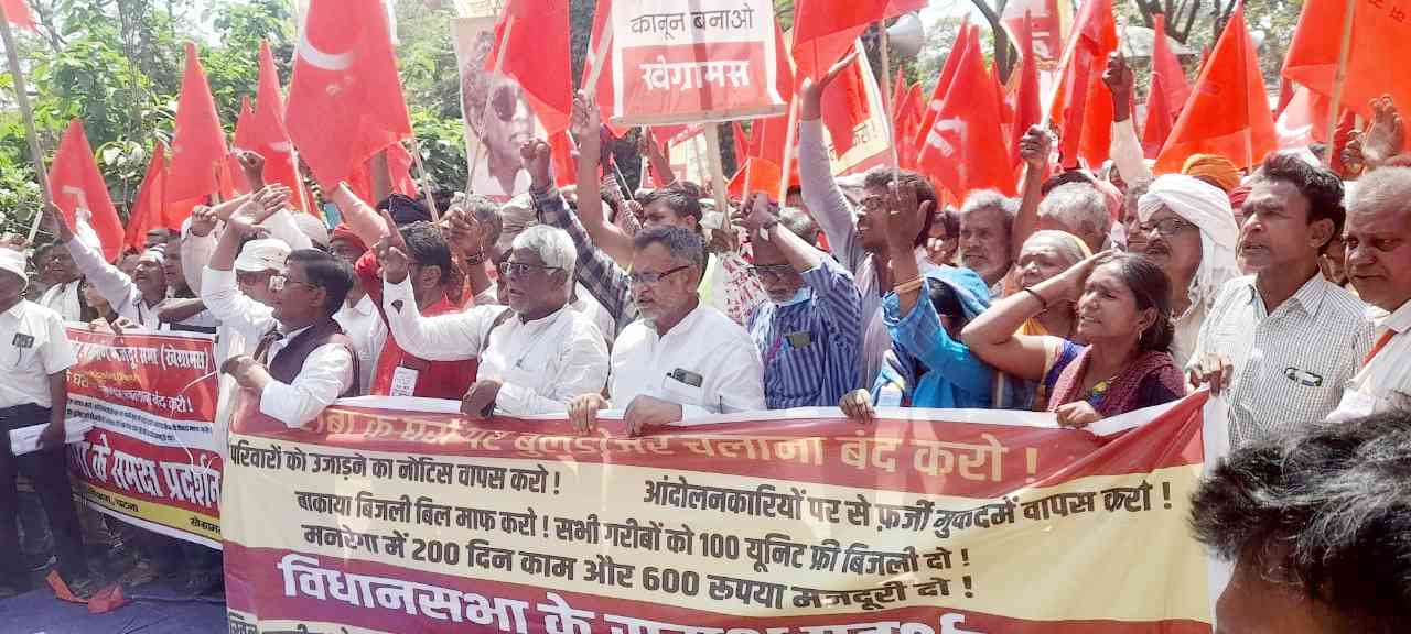 भाजपाई बुलडोजर की तर्ज पर बिहार के दलितों-गरीबों पर चल रहे बुलडोजर के खिलाफ विगत 28 मार्च 2023, को बिहार की राजधानी पटना में अखिल भारतीय खेत व ग्रामीण मजदूर सभा (खेग्रामस) के बैनर से हजारों खेत मजदूरों-दलितों-गरीबों ने विधानसभा के समक्ष आक्रोशपूर्ण प्रदर्शन किया. गेट पब्लिक लाइब्रेरी से प्रदर्शन निकला और गर्दनीबाग धरनास्थल पर एक बड़ी सभा आयोजित हुई, जिसे खेग्रामस नेताओं के अलावे भाकपा(माले) विधायकों ने भी संबोधित किया.