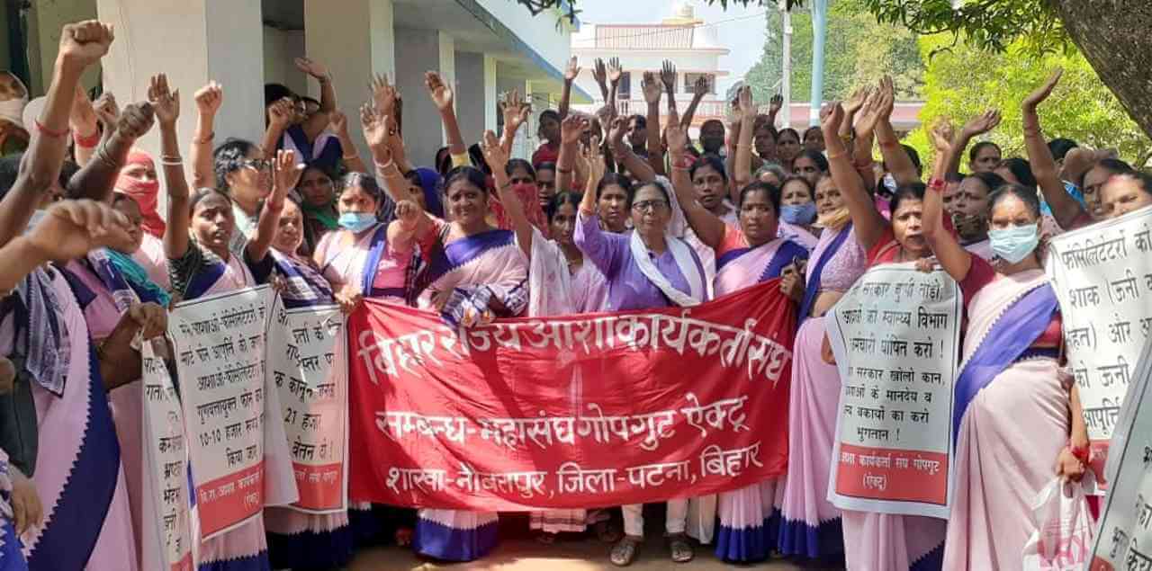 बिहार में बिहार राज्य आशा कार्यकर्ता संघ (गोप गुट-ऐक्टू) के बैनर तले आशाओं ने राष्ट्रीय मांगों के साथ-साथ नीतीश सरकार की बेरुखी को मुद्दा बनाते हुए राज्य के अधिकांश पीएचसी को ठप कर उसके मुख्य द्वार पर धरना-प्रदर्शन किया. आशाओं ने कहा कि नीतीश राज में कोरोना काल के पारिश्रमिक का भुगतान नही हुआ है जो एक अक्षम्य अपराध है. अर्जित बकाये के साथ राज्य सरकार द्वारा तय 1000 रुपये की मासिक पारितोषिक राशि का भुगतान लम्बे समय से नहीं हुआ है.आशाओं से सभी तरह का काम सरकार लेती है, उनको चुनावी ड्यूटी में भी लगाती है, लेकिन उन्हें विभागीय कर्मचारी घोषित करने और मासिक मानदेय देने से सरकार भाग रही है. बिहार में कोरोना काल की तय और अर्जित राशि भी नीतीश सरकार ने भुगतान नहीं किया है. उन्होंने सरकार से अपनी लंबित मांगों को पूरा करने की मांग की.