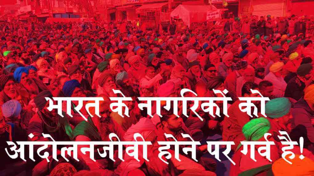 उन्हें समझ लेना चाहिए कि लोकतांत्रिक आंदोलनों में भाग लेने वाले – ट्रेड यूनियन, किसान संगठनों, महिला आंदोलन, दलित आंदोलन, नागरिक अधिकार आंदोलन और पर्यावरण बचाने के संघर्षों आदि में शामिल लोग अपने आंदोलनजीवी होने पर गर्व करते हैं और दमित, वंचित व विस्थापित जनता के संघर्षों में अपनी जान की बाजी लगा देते हैं. भले ही सरकारें ऐसे लोगों को अपने लिए खतरा समझती रहें, गरीब व उत्पीड़ित जनता के संघर्षों में सबसे अगली कतार में आकर लड़ने वाले ऐसे लोग प्रत्येक देश का गौरव होते हैं.