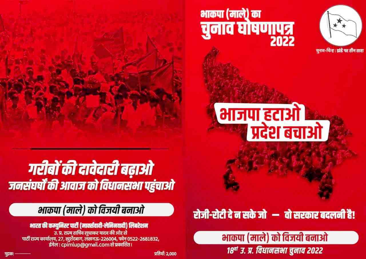 अंतिम सूची जारी करते हुए राज्य सचिव सुधाकर यादव ने कहा कि चुनाव प्रचार के दौरान भाकपा(माले) भाजपा के खिलाफ जोरदार अभियान चलायेगी. बेरोजगारी, महंगाई, योगी के आतंक राज व नफरती राजनीति का खात्मा, दबंगों-दंगाइयों पर लगाम, महिलाओं-दलितों-अल्पसंख्यकों की सुरक्षा, लोकतंत्र आदि चुनाव प्रचार के प्रमुख मुद्दे होंगे. उन्होंने कहा कि अपनी सीटों पर भाकपा(माले) पूरी ताकत से लड़ेगी और भाजपा को हराने के लिए बाकी सीटों पर मुख्य विपक्षी सपा गठबंधन का समर्थन करेगी.