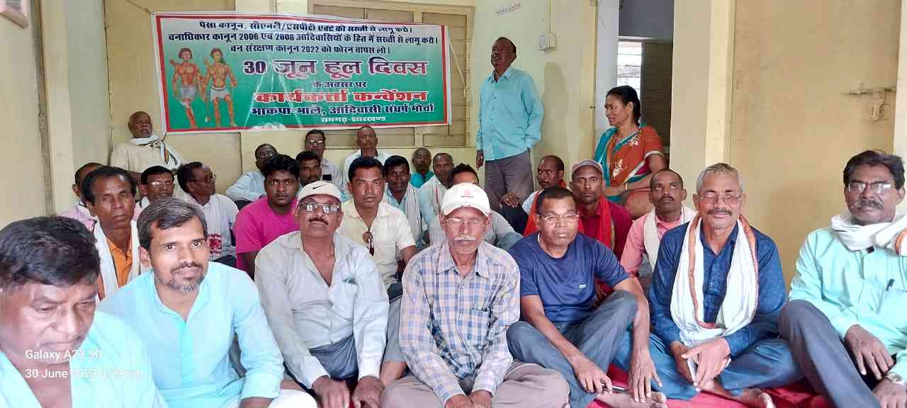 पेसा कानून और सीएनटी/एसपीटी एक्ट को सख्ती से लागू करने, वनाधिकार कानून 2006 व 2008 आदिवासियों के हित में सख्ती से लागू करने और वन संरक्षण कानून 2022 को शीघ्र वापस लनेे की मांग और आदिवासियों के जल, जंगल, जमीन व खनिज की काॅरपोरेट लूट के खिलाफ संघर्ष तेज करने का आह्वान किया गया.
