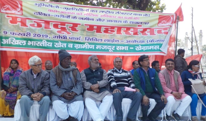 संघ-भाजपा द्वारा मंदिर मुद्दे को आगे कर जनता के जरूरी सवालों को पीछे धकेलने, मोदी सरकार की पांच साल की विफलताओं से ध्यान भटकाने और चुनावी साल में ध्रुवीकरण कराने की कोशिशों के बीच, 9 फरवरी 2019 को उत्तर प्रदेश के विभिन्न जिलों से बड़ी तादाद में फैजाबाद-अयोध्या पहुंचे ग्रामीण गरीबों ने अखिल भारतीय खेत व ग्रामीण मजदूर सभा (खेग्रामस) के बैनर तले मजदूर महासंसद लगा कर हुंकार भरी और भोजन, जमीन, आवास, आजीविका, सम्मान, शिक्षा व स्वास्थ्य जैसे बुनियादी मुद्दे उठाकर दावेदारी पेश की. महासंसद से पहले, फैजाबाद रेलवे स्टेशन से लाल झंडे-बैनरों और मोदी-योगी सरकार के खिलाफ जोरदार नारों के साथ मार्च निकाला, जो मुख्य मार्ग से होते हुए रोडवेज बस स्टैंड की निकट गांधी पार्क पहुंचा और मजदूर महासंसद में बदल गया.