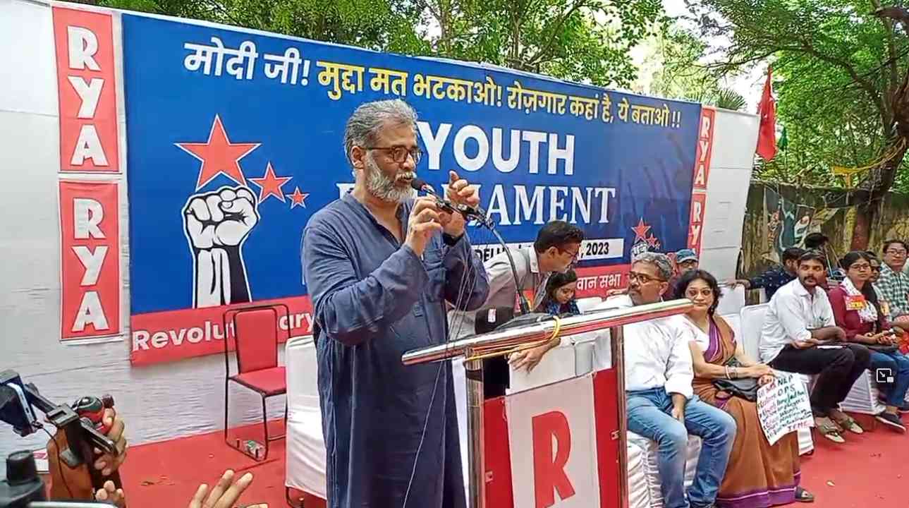 आरवाईए के राष्ट्रीय महासचिव नीरज कुमार ने कहा कि आज देश भर से नौजवानों की आवाज लेकर हम दिल्ली में संसद के सामने नौजवानों की संसद लगा रहे हैं क्योंकि देश की संसद ने नौजवानों के भविष्य और रोजगार के बारे में बात करना बंद कर दिया है. 2 करोड़ हर साल रोजगार का वादा कर सत्ता में आई मोदी सरकार में थोड़ी भी हिम्मत है तो पिछले नौ सालों में कितने नौजवानों को रोजगार मिला इसपर श्वेत पत्र लाए. संसद में एक सवाल का जबाव देते हुए सरकार ने खुद स्वीकार किया कि 8 साल में मात्र 7.2 लाख रोजगार ही सरकार दे पाई है जबकि 22 करोड़ नौजवानों ने इसके लिए आवेदन किया था. नौजवानों को रोजगार देने की इस सच्चाई के बीच प्रधानमंत्री मोदी ‘रोजगार मेला’ लगा कर और कुछ हजार नियुक्ति-पत्र बांट कर मीडिया के माध्यम से रोजगार देने का ढोंग कर रहे हैं. यह संख्या खाली पड़े पदों का 15 प्रतिशत भी नहीं है. अपनी इस नाकामी को छुपाने के लिए प्रधानमंत्री मोदी डाकिया बन कर नियुक्ति पत्र बांट रहे हैं.