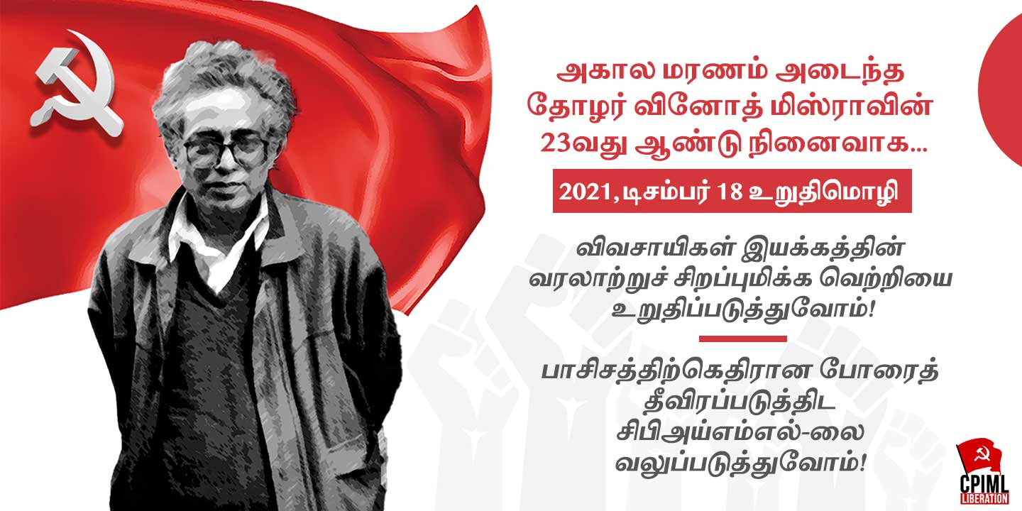 வரலாற்றின் முக்கியமான பிரச்சனைகள் பலவும் மக்களது தெருப்போராட்டங்கள் மூலம்தான் தீர்க்கப்படுகின்றன. தோழர் வினோத் மிஸ்ராவின் இந்த சொற்கள், நமது அனுபவத்தில், உண்மை என்பது மீண்டுமொருமுறை நிரூபணமாகியுள்ளது. கோவிட் பெருந்தொற்றை சாதகமாக எடுத்துக்கொண்டு, தனியார் பெரும் நிறுவனங்களிடம் விவசாயத்தின் கடிவாளங்களை, மோசடியாக நிறைவேற்றப்பட்ட மூன்று வேளாண் சட்டங்கள் மூலம் மோடி அரசாங்கம் ஒப்படைக்கப் பார்த்தது. ஆனால், பஞ்சாப் விவசாயிகள், பெருந்தொற்றுக்கு மத்தியிலும் இயக்கத்தை கட்டி எழுப்பினர். அந்த இயக்கம், நாடு முழுவதுமுள்ள விவசாயிகளுக்கு உத்வேகமூட்டியது. கொடூர சட்டங்களுக்கு சவால் விட்டும், தீயவர்களெனச் சித்தரிக்கும் பரப்புரைகள், தீவிரமான தாக்குதல்களுக்கு மத்தியிலும் போராட்டத்தை ஒரு முழு ஆண்டு வரை நீடித்து நிலைக்க வைத்துள்ளனர். இறுதியாக, இந்த ஆணவமிக்க மோடி அரசாங்கத்தை, மூன்று சட்டங்களையும் ஒட்டு மொத்தமாக ரத்து செய்யவும் வைத்துள்ளனர். இவ்வாறு விவசாயிகள் போராட்டம் வரலாறு படைத்திருக்கிறது. விவசாயிகள் இயக்கம் இத்தகையதொரு சக்திமிக்க பாசிச எதிர்ப்பு தடையரணாக வளர்ந்திருப்பதைக் காண வாய்த்திருந்தால் தோழர் வினோத்மிஸ்ரா ஆகப் பெரும் மகிழ்ச்சியடைந்திருப்பார்.