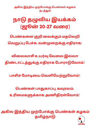 அகில இந்திய முற்போக்கு பெண்கள் கழகம், தமிழ்நாடு